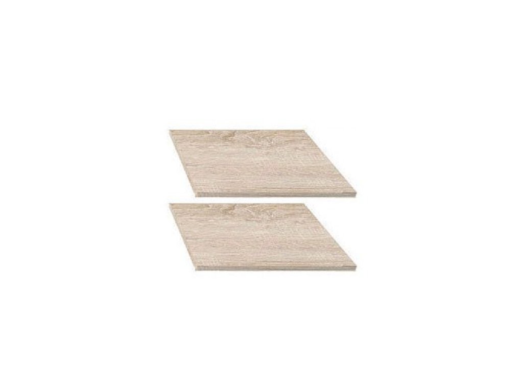 Sada obsahuje dva kusy polic, každá o rozměrech 38 x 51 cm. Jsou vyrobeny z kvalitního lamina v oblíbeném dekoru Dub sonoma, takže budou dokonale ladit s interiérem vaší skříně. Instalace je rychlá a jednoduchá. Vytvořte si dokonale organizovaný šatník přesně podle svých představ!