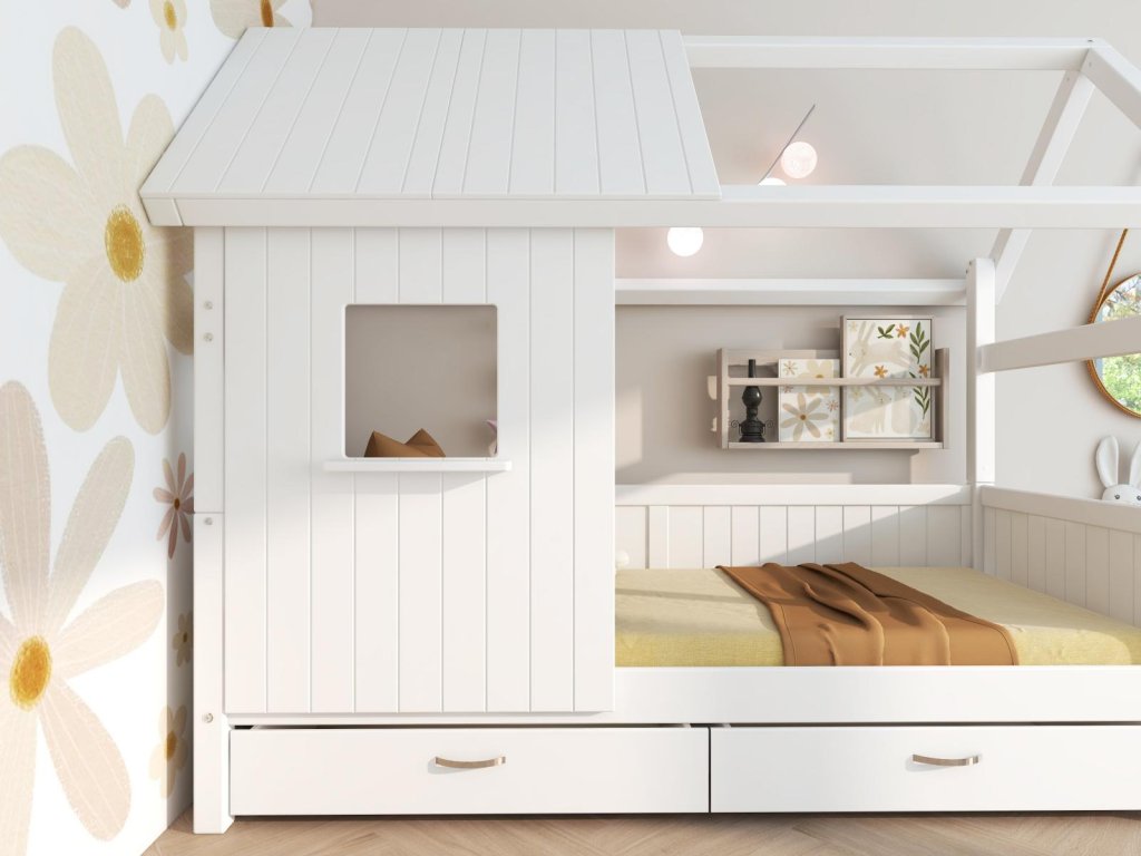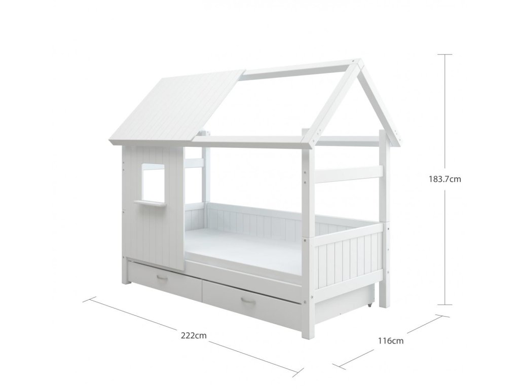 Postel domeček Romantic s atraktivními detaily dodá dětskému pokoji okouzlující a hravou atmosféru, zásuvky pod postelí zase spoustu praktického úložného prostoru. Tato postel je dokonalým způsobem, jak vytvořit klidný a zároveň zábavný prostor, díky kterému bude pokoj vašeho dítěte výjimečný.
