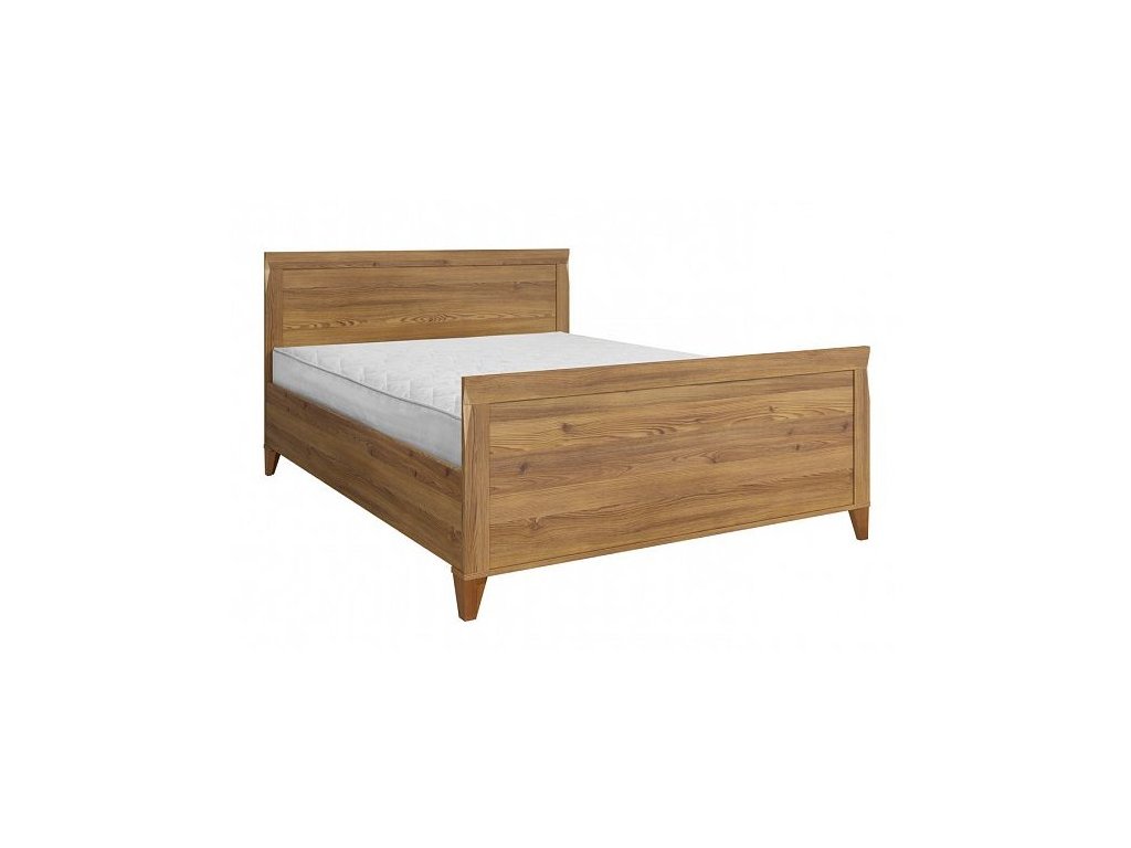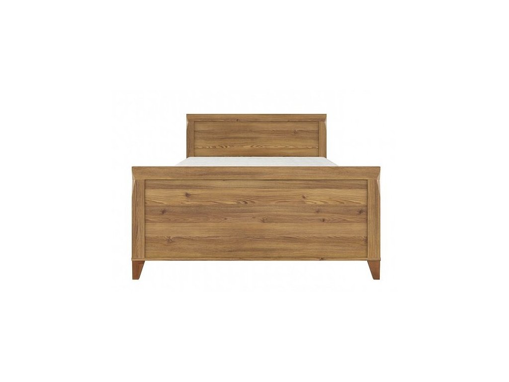 Postel Bergen LOZ/140 v barevném provedení modřín sibiu zlatý. Předností tohoto sektoru jsou vysoké nohy, kovové úchyty a zkosené hrany na bocích.