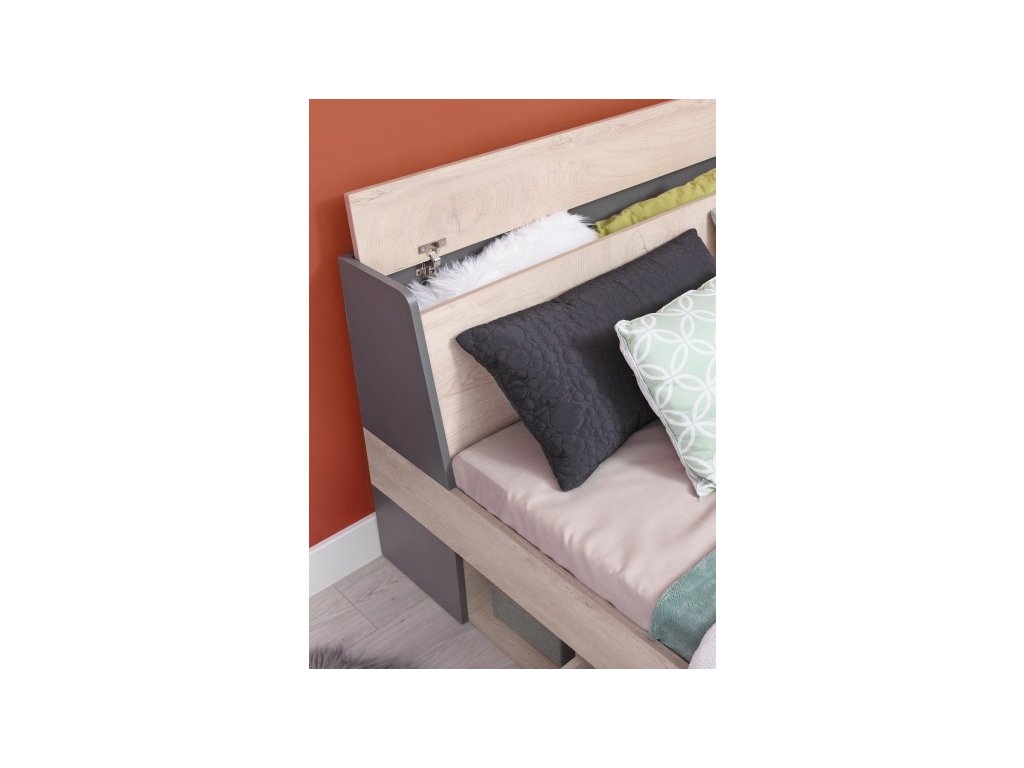 Postel má za hlavou úložný box a dole 2 zásuvky.