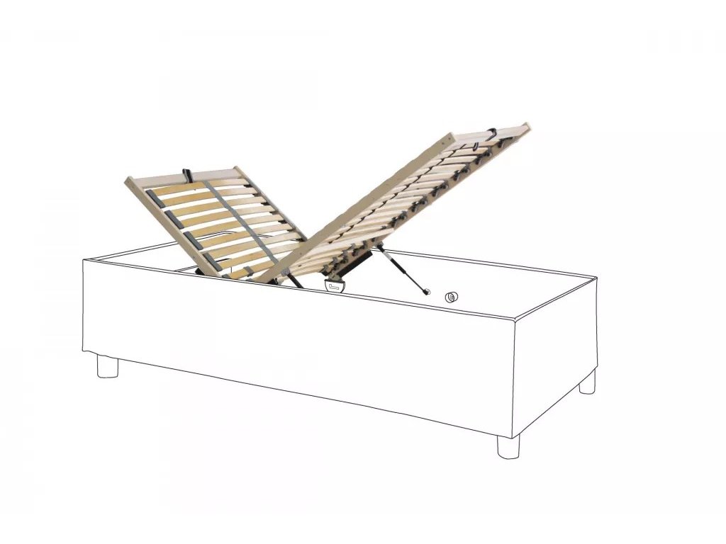 Úložný prostor lůžka se otevírá za pomoci plynových pístů od nohou postele.