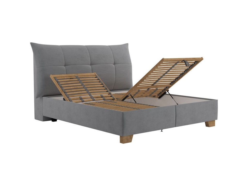 Úložný prostor lůžka se otevírá za pomoci plynových pístů od nohou postele.