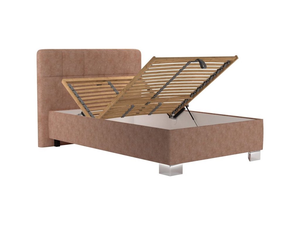 Moderní postel, která se hodí nejen do studentských nebo dětských pokojů, ale také do menších ložnic. Základem lůžka je 28 lamelový rošt s mechanickým polohováním hlavy a nohou (7 poloh hlavy, 1 poloha nohou), s nastavením tuhosti lamel a s popruhem proti přetížení. Rošt se skládá z 28 lamel uložených ve výkyvných kaučukových pouzdrech. Snadnější manipulaci při otevírání úložného prostoru zajišťují plynové písty. Matrace není součástí postele. Součástí postele je úložný prostor, který se otevírá od nohou (pomocí plynových pístů). Tuto postel nabízíme také v dalších rozměrech. Postel je možné zakoupit také s matrací . Zboží je dodáváno v demontu.
