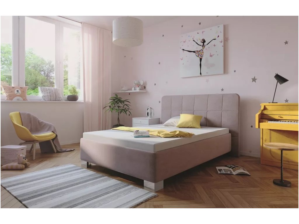 Kelvin je moderní postel s prošívaným čelem a kvalitní matrací se snímatelným a pratelným potahem, která je volně ložená na polohovacím lamelovém roštu. Je oblíbená hlavně mezi teenagery a je také vhodná do studentských pokojů, nebo pokojů pro hosty. Postel má velký úložný prostor na lůžkoviny, který má přístup od nohou pomocí plynových pístů. Rošt má 28 lamel s nastavením tuhosti a popruh proti přetížení. Plocha pro spaní je 120x200 cm, s výškou lehací plochy cca 53 cm. Doporučená nosnost je do 110 kg. Cena postele je uvedena včetně roštu a matrace. Vyobrazené doplňky a dekorace nejsou v ceně.
