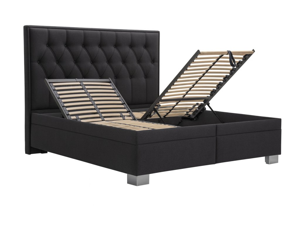 Úložný prostor lůžka se otevírá za pomoci plynových pístů od nohou postele.