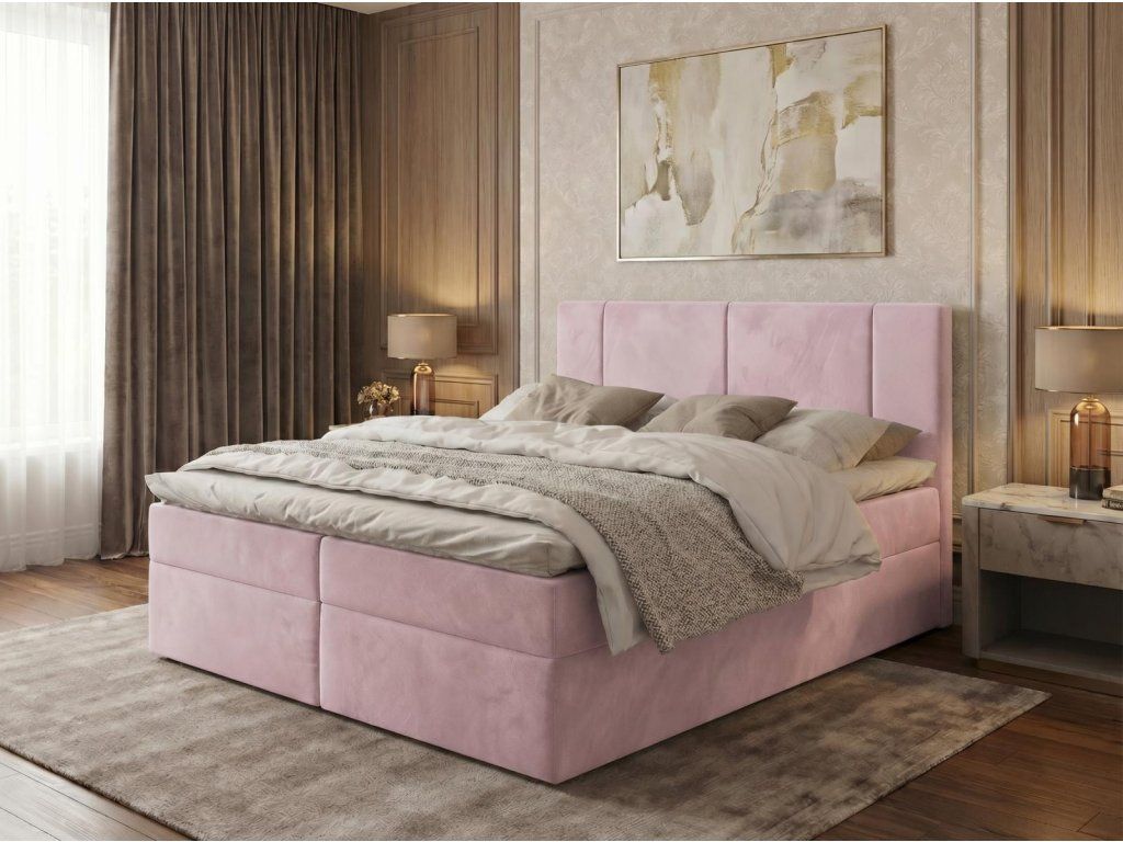 Moderní čalouněný boxspring Manila představuje elegantní dvoulůžko s integrovanou kvalitní pružinovou matrací a horním toperem pro vyšší komfrot spánku.
