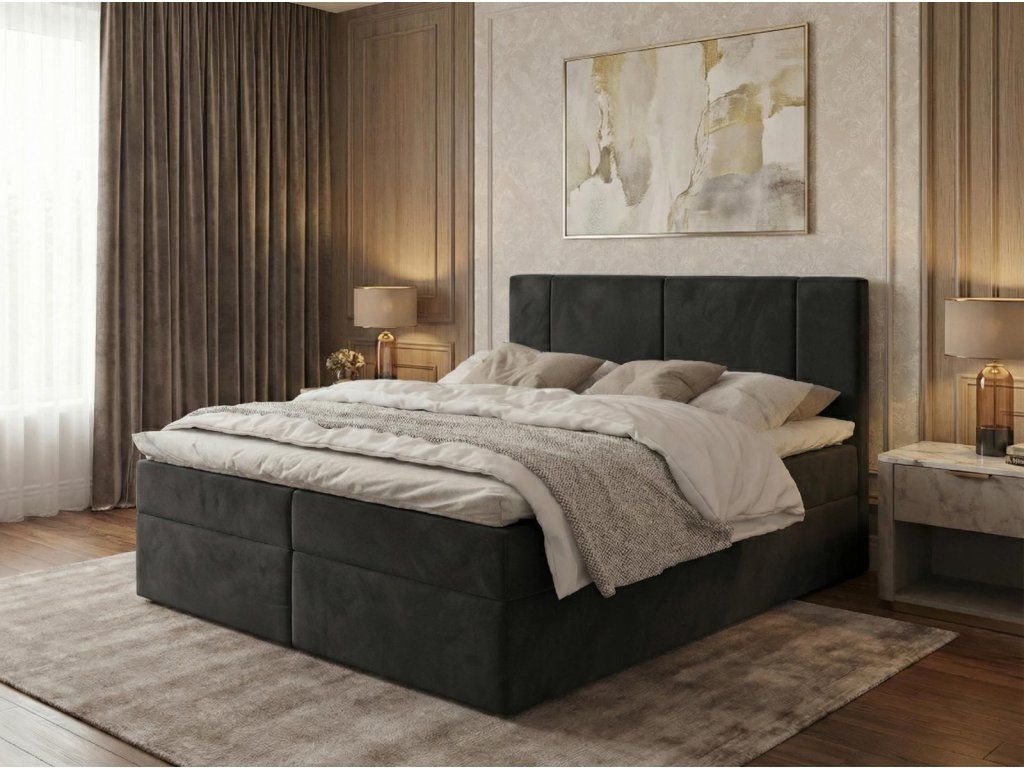 Moderní čalouněný boxspring Manila představuje elegantní dvoulůžko s integrovanou kvalitní pružinovou matrací a horním toperem pro vyšší komfrot spánku.