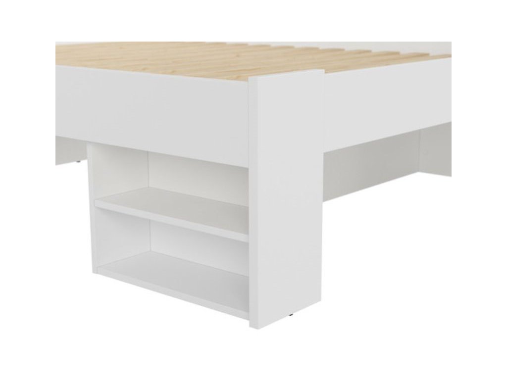 Postel je vyrobena z pevného a stabilního lamina o síle 1,6 a 1,9 cm, což zaručuje její dlouhou životnost. Jedním z chytrých designových prvků jsou praktické police integrované přímo do rámu postele – ideální místo pro knihy, dekorace nebo cokoliv, co chcete mít na dosah. Příjemná výška rámu 47 cm zase zajišťuje pohodlnější vstávání.
