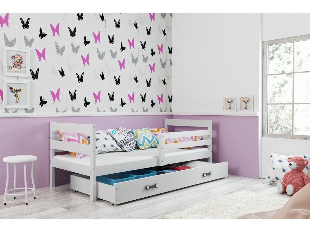 Dětská postel Norbert je určena pro ty, kteří pro své dítě hledají funkčnost a kvalitu. Postel je vyrobena z borovicového dřeva, které je lakováno 3x a tím je zajištěna jasnost a barevná stálost. Na lakování je použitý bezpečný, vodou ředitelný lak vyhovující normám. Její stabilní konstrukce, zaoblené hrany a zábrana, která je v ceně postele, zajišťují bezpečnost a pohodlí dítěte. Zábranu si můžete podle potřeby umístit na pravou, nebo levou stranu postele. Součástí postele je také praktický úložný prostor na kolečkách, rošt a pěnová matrace se snímatelným potahem. Tloušťka matrace je 7cm. Plocha pro spaní je 90x200 cm. Postel je dodávána v demontu a součástí je montážní plánek včetně všech potřebných spojovacích materiálů. Vyobrazené dekorace nejsou v ceně.