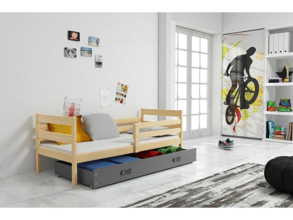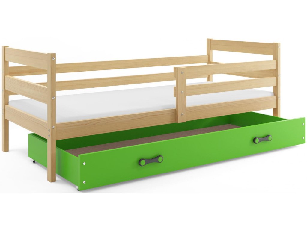 Dětská postel Norbert je určena pro ty, kteří pro své dítě hledají funkčnost a kvalitu. Postel je vyrobena z borovicového dřeva, které je lakováno 3x a tím je zajištěna jasnost a barevná stálost. Na lakování je použitý bezpečný, vodou ředitelný lak vyhovující normám. Její stabilní konstrukce, zaoblené hrany a zábrana, která je v ceně postele, zajišťují bezpečnost a pohodlí dítěte. Zábranu si můžete podle potřeby umístit na pravou, nebo levou stranu postele. Součástí postele je také praktický úložný prostor na kolečkách, rošt a pěnová matrace se snímatelným potahem. Tloušťka matrace je 7cm. Plocha pro spaní je 90x200 cm. Postel je dodávána v demontu a součástí je montážní plánek včetně všech potřebných spojovacích materiálů. Vyobrazené dekorace nejsou v ceně.