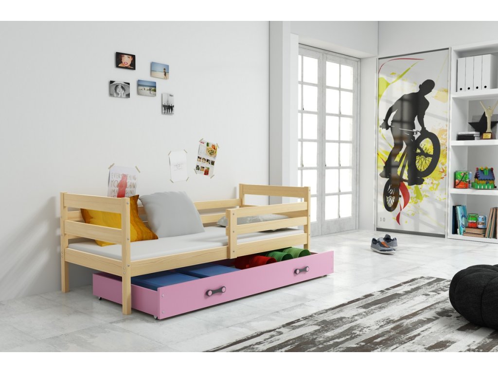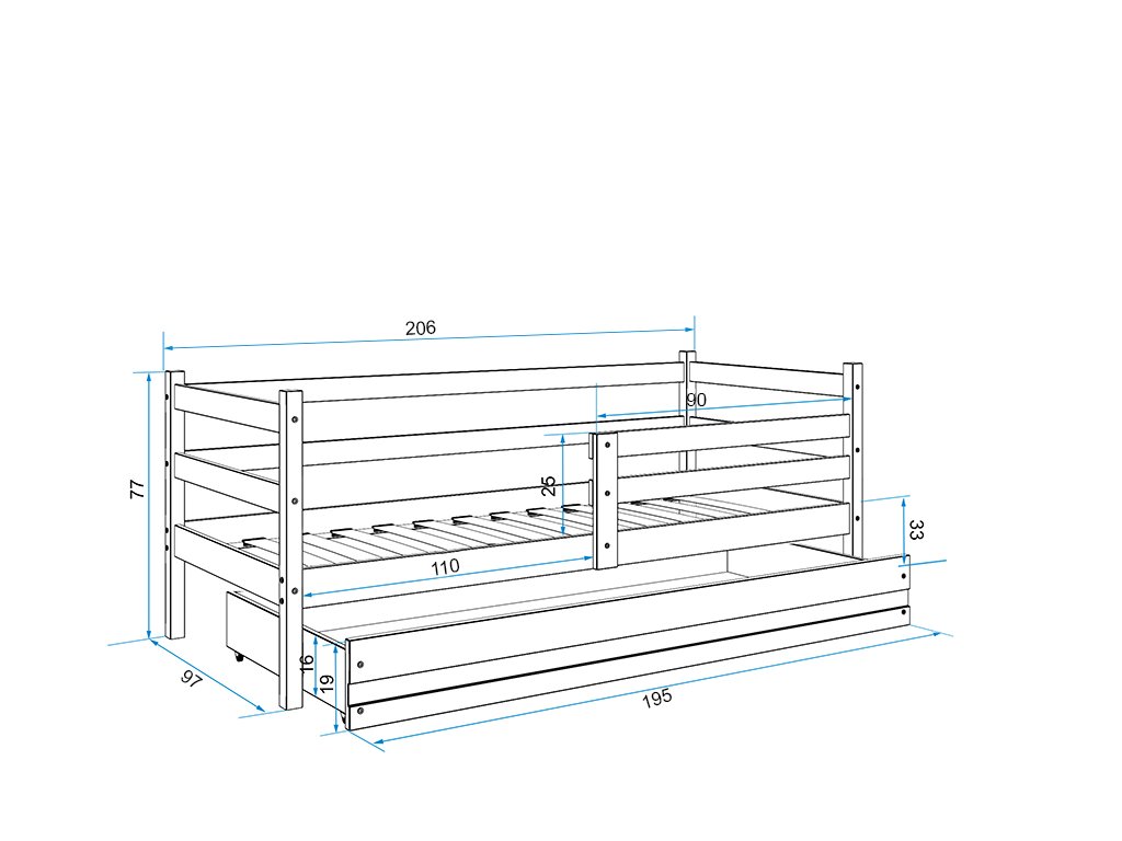 Dětská postel Norbert je určena pro ty, kteří pro své dítě hledají funkčnost a kvalitu. Postel je vyrobena z borovicového dřeva, které je lakováno 3x a tím je zajištěna jasnost a barevná stálost. Na lakování je použitý bezpečný, vodou ředitelný lak vyhovující normám. Její stabilní konstrukce, zaoblené hrany a zábrana, která je v ceně postele, zajišťují bezpečnost a pohodlí dítěte. Zábranu si můžete podle potřeby umístit na pravou, nebo levou stranu postele. Součástí postele je také praktický úložný prostor na kolečkách, rošt a pěnová matrace se snímatelným potahem. Tloušťka matrace je 7cm. Plocha pro spaní je 90x200 cm. Postel je dodávána v demontu a součástí je montážní plánek včetně všech potřebných spojovacích materiálů. Vyobrazené dekorace nejsou v ceně.