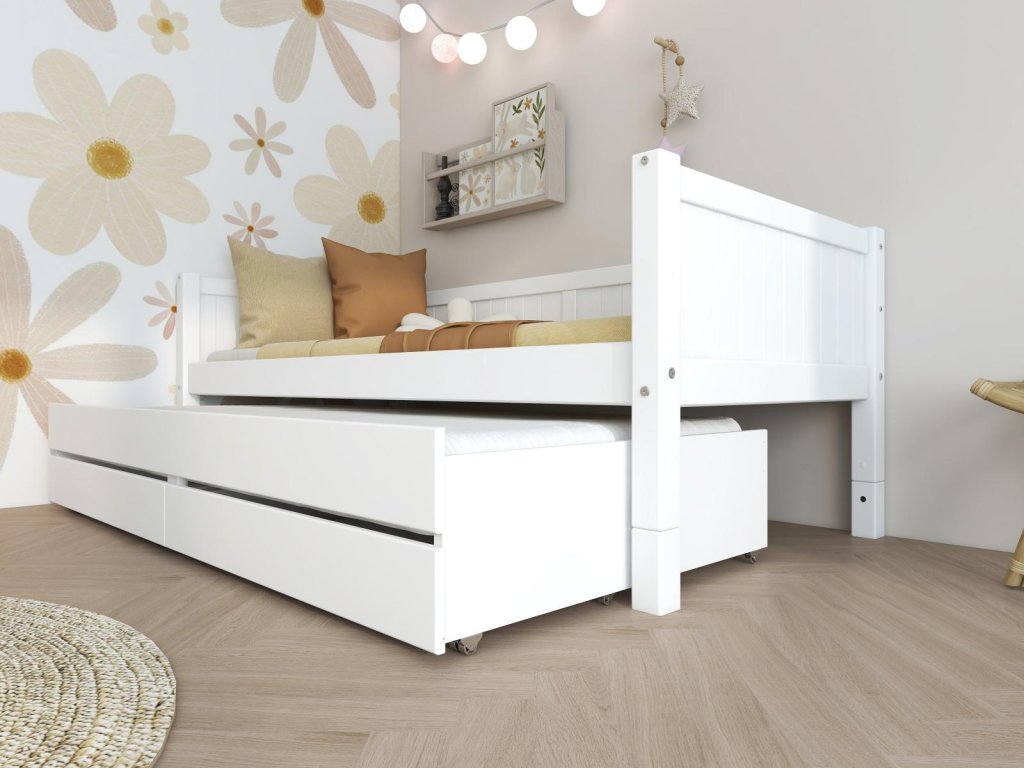 Postel Romantic je skvělá volba pro první dětskou postel – nebo ideální řešení pro větší děti i teenagery. Pod postelí budete mít nejen praktický úložný prostor, ale také získáte přistýlku pro přátele a rodinu během zábavných přespání.
