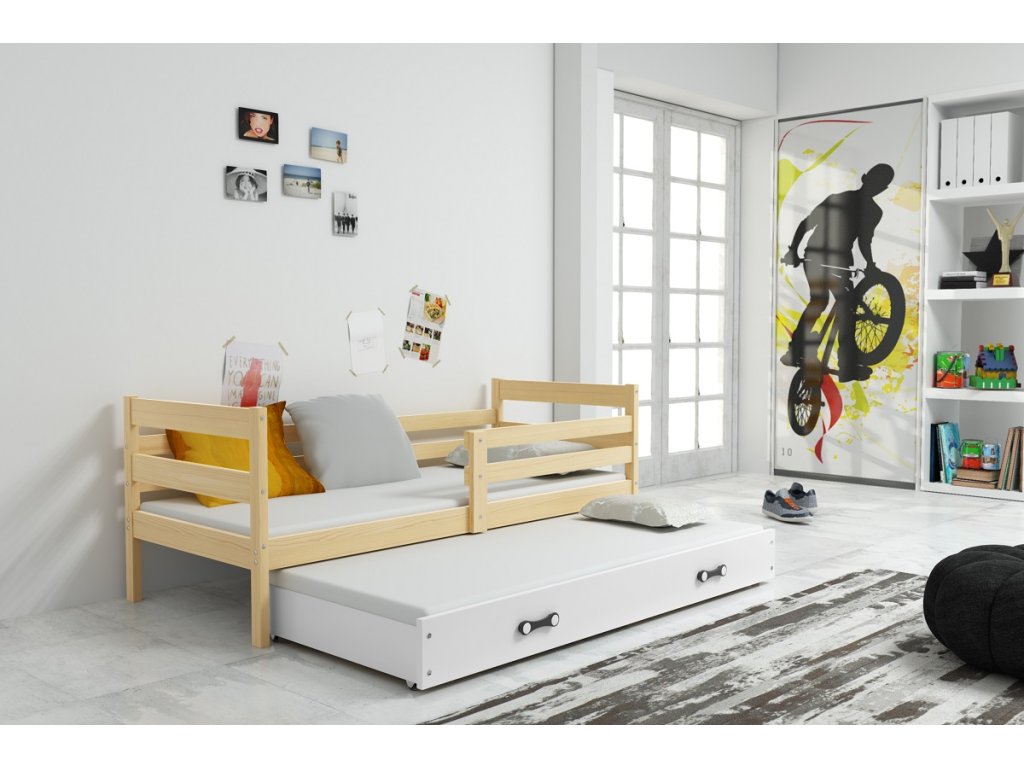 Dětská postel Norbert II je určena pro ty, kteří pro své dítě hledají funkčnost, pohodlí a kvalitu. Postel je vyrobena z borovicového dřeva. Její stabilní konstrukce, zaoblené hrany a zábrana, která je v ceně postele, zajišťují bezpečnost a pohodlí dítěte. Zábranu si můžete podle potřeby umístit na pravou, nebo levou stranu postele. Součástí postele je také praktická přistýlka s matrací, kterou můžete využít pro druhé dítě, nebo když u Vašeho dítěte bude chtít přespat kamarád/ka. Obě části postele mají rošt a pěnovou matraci se snímatelným potahem. Tloušťka matrace je 7cm. Plocha pro spaní je 90x200 cm (vrchní část) a 80x190 cm (přistýlka). Postel je dodávána v demontu a součástí je montážní plánek včetně všech potřebných spojovacích materiálů. Vyobrazené dekorace nejsou v ceně.