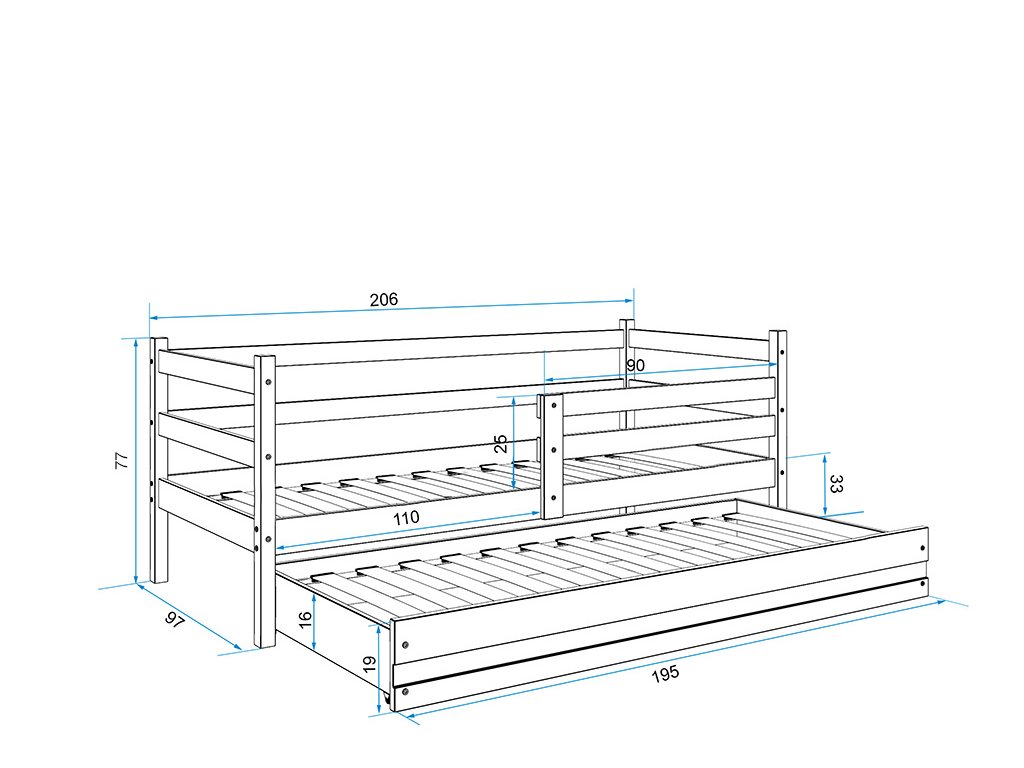 Postel s přistýlkou Norbert II 90x200 borovice/modrá
