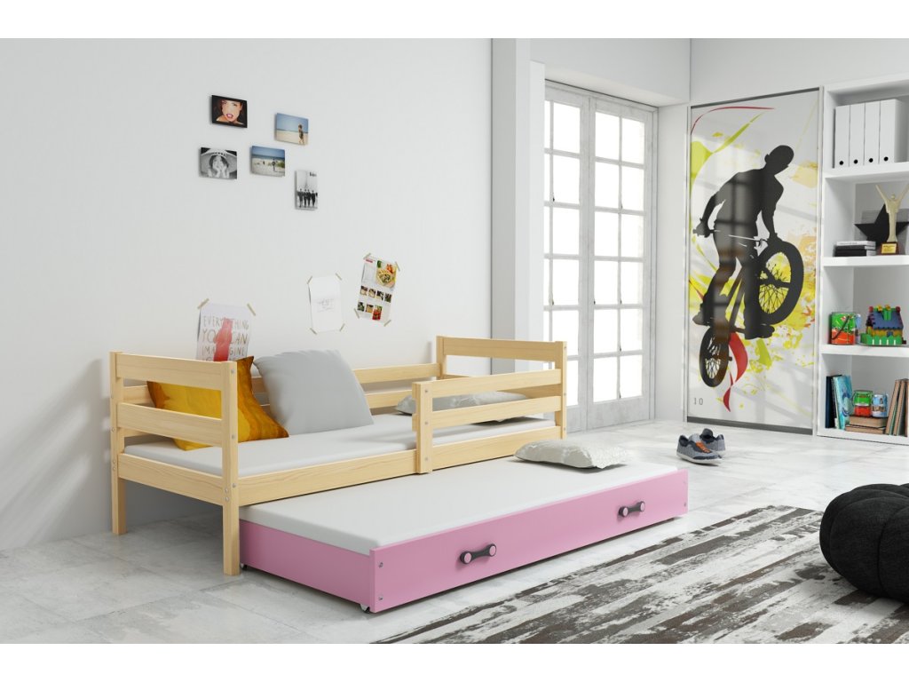 Dětská postel Norbert II je určena pro ty, kteří pro své dítě hledají funkčnost, pohodlí a kvalitu. Postel je vyrobena z borovicového dřeva. Její stabilní konstrukce, zaoblené hrany a zábrana, která je v ceně postele, zajišťují bezpečnost a pohodlí dítěte. Zábranu si můžete podle potřeby umístit na pravou, nebo levou stranu postele. Součástí postele je také praktická přistýlka s matrací, kterou můžete využít pro druhé dítě, nebo když u Vašeho dítěte bude chtít přespat kamarád/ka. Obě části postele mají rošt a pěnovou matraci se snímatelným potahem. Tloušťka matrace je 7cm. Plocha pro spaní je 90x200 cm (vrchní část) a 80x190 cm (přistýlka). Postel je dodávána v demontu a součástí je montážní plánek včetně všech potřebných spojovacích materiálů. Vyobrazené dekorace nejsou v ceně.