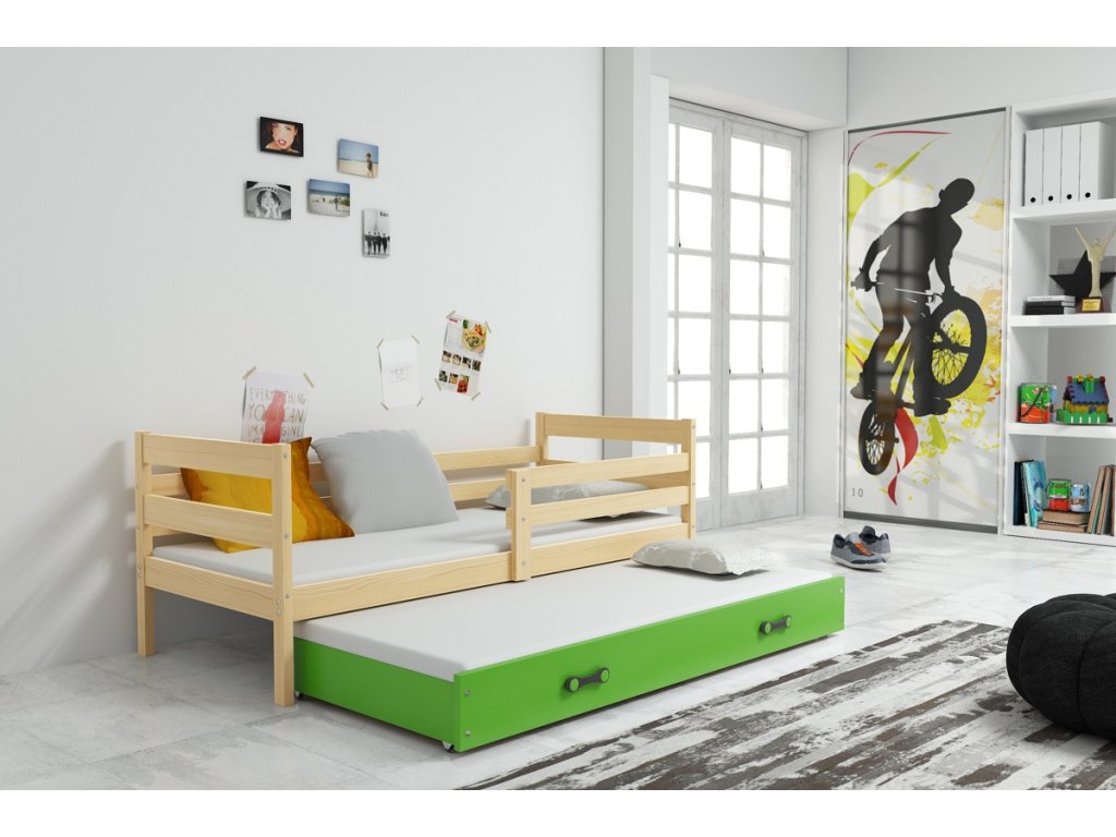 Dětská postel Norbert II je určena pro ty, kteří pro své dítě hledají funkčnost, pohodlí a kvalitu. Postel je vyrobena z borovicového dřeva. Její stabilní konstrukce, zaoblené hrany a zábrana, která je v ceně postele, zajišťují bezpečnost a pohodlí dítěte. Zábranu si můžete podle potřeby umístit na pravou, nebo levou stranu postele. Součástí postele je také praktická přistýlka s matrací, kterou můžete využít pro druhé dítě, nebo když u Vašeho dítěte bude chtít přespat kamarád/ka. Obě části postele mají rošt a pěnovou matraci se snímatelným potahem. Tloušťka matrace je 7cm. Plocha pro spaní je 90x200 cm (vrchní část) a 80x190 cm (přistýlka). Postel je dodávána v demontu a součástí je montážní plánek včetně všech potřebných spojovacích materiálů. Vyobrazené dekorace nejsou v ceně.