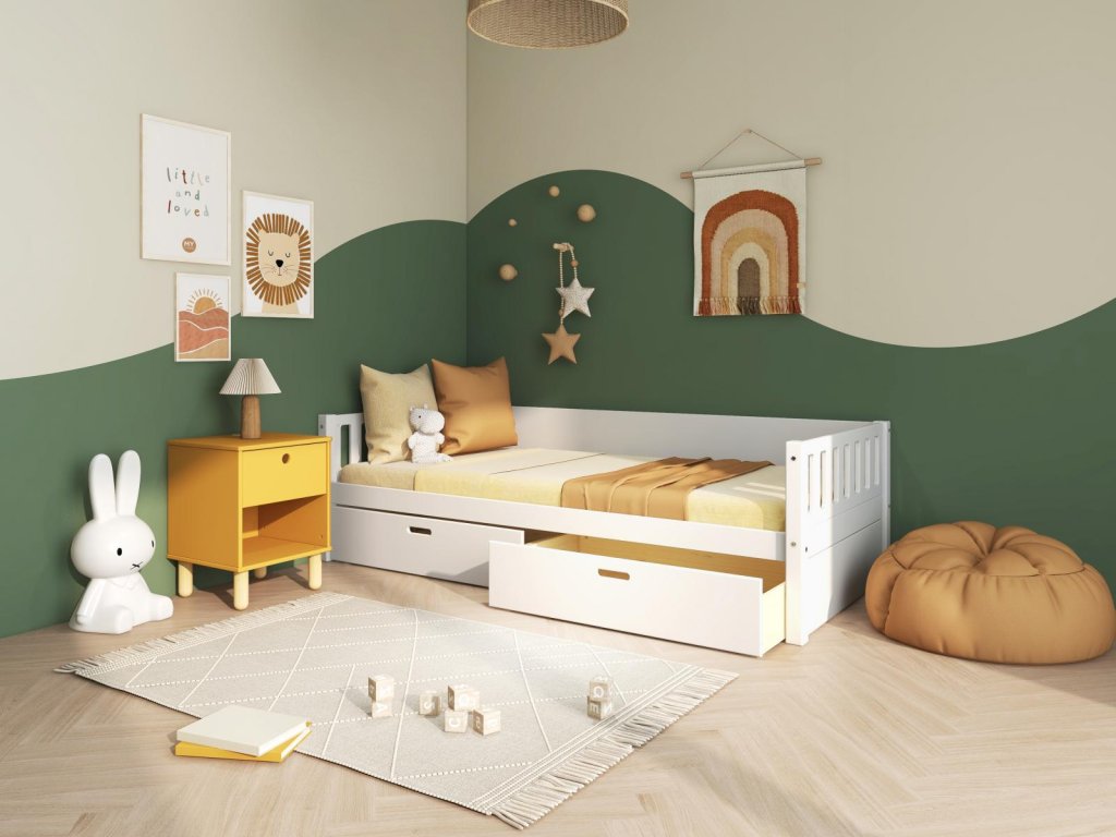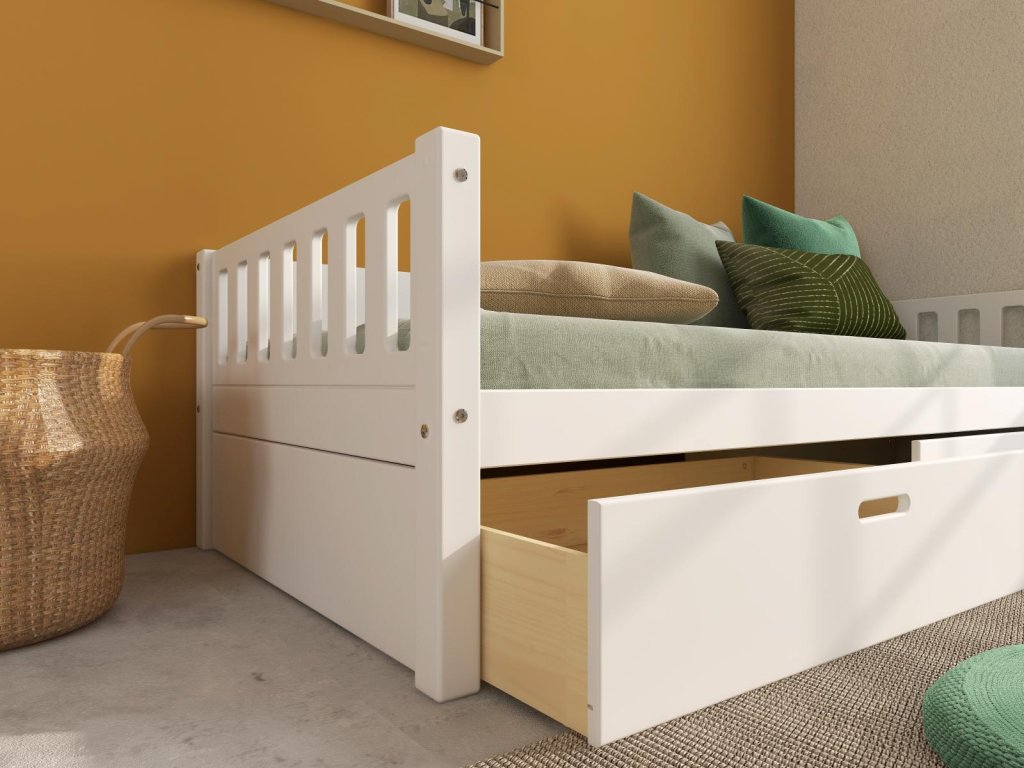 Postel Viggo s úložným prostorem je skvělá volba pro první dětskou postel – nebo ideální řešení pro větší děti i teenagery. Zásuvky pod postelí nabízí spoustu stylového úložného prostoru.