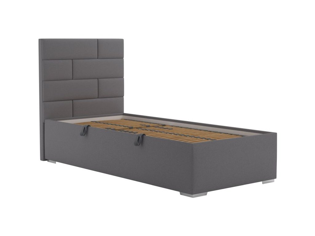 Moderní postel, která se hodí nejen do studentských nebo dětských pokojů, ale také do menších ložnic. Základem lůžka je pevný lamelový rošt s nastavením tuhosti lamel a s popruhem proti přetížení. Rošt se skládá z 28 lamel uložených ve výkyvných kaučukových pouzdrech. Snadnější manipulaci při otevírání úložného prostoru zajišťují pružinové mechanismy. Matrace není součástí postele. Součástí postele je úložný prostor, který se otevírá z boku postele. Tuto postel nabízíme také v dalších rozměrech. Postel je možné zakoupit také s matrací. Zboží je dodáváno v demontu.