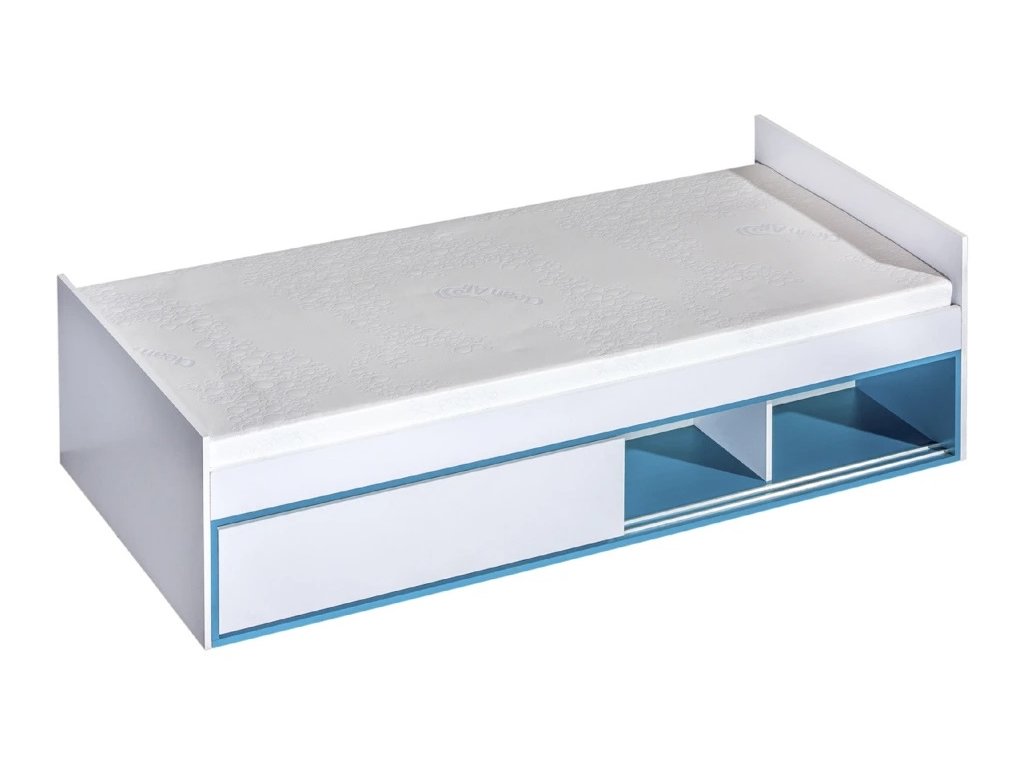 korpus: bílá + dvířka: bílá + dodatky: tyrkys