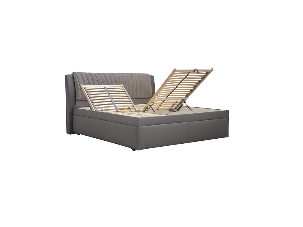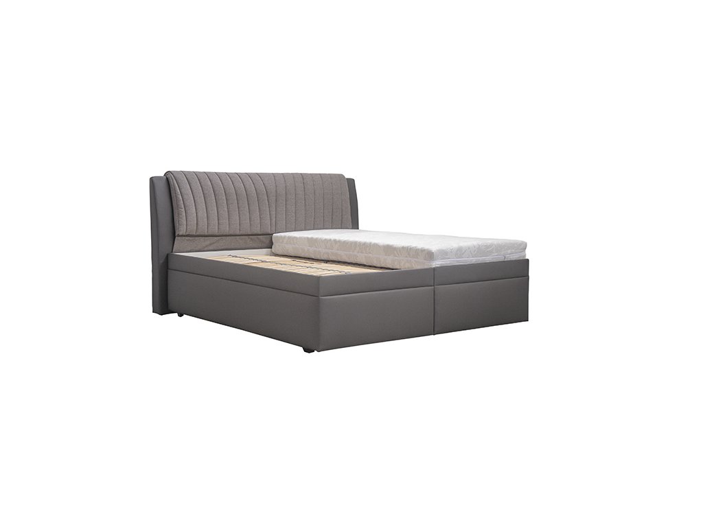 Moderní postel s efektním velmi příjemným čelem, které má odnímatelný potah. Součástí postele je přehoz s dekorativními polštářky. Základem lůžka je 28 lamelový rošt s mechanickým polohováním hlavy a nohou (7 poloh hlavy, 1 poloha nohou), s nastavením tuhosti lamel a s popruhem proti přetížení. Rošt se skládá z 28 lamel uložených ve výkyvných kaučukových pouzdrech. Snadnější manipulaci při otevírání úložného prostoru zajišťují plynové písty. K posteli je možný výběr volně ložených matrací. Matrace není součástí postele. Součástí postele je úložný prostor, který se otevírá od nohou (pomocí plynových pístů). Tuto postel nabízíme také v rozměru 180x200 cm. Zboží je dodáváno v demontu.