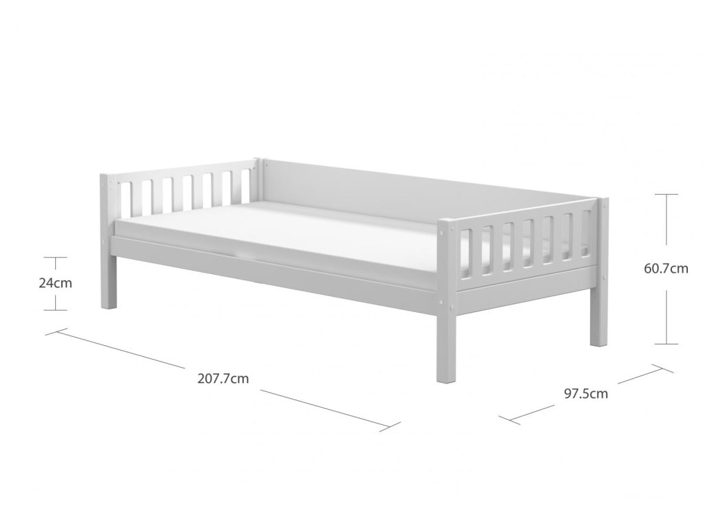 Zboží je dodáváno v demontu BEZ MATRACE. Doporučujeme dokoupit matraci 90 x 200 cm. Součástí je schematický návod na montáž včetně všech spojovacích prvků. Vyobrazené doplňky a dekorace nejsou v ceně.