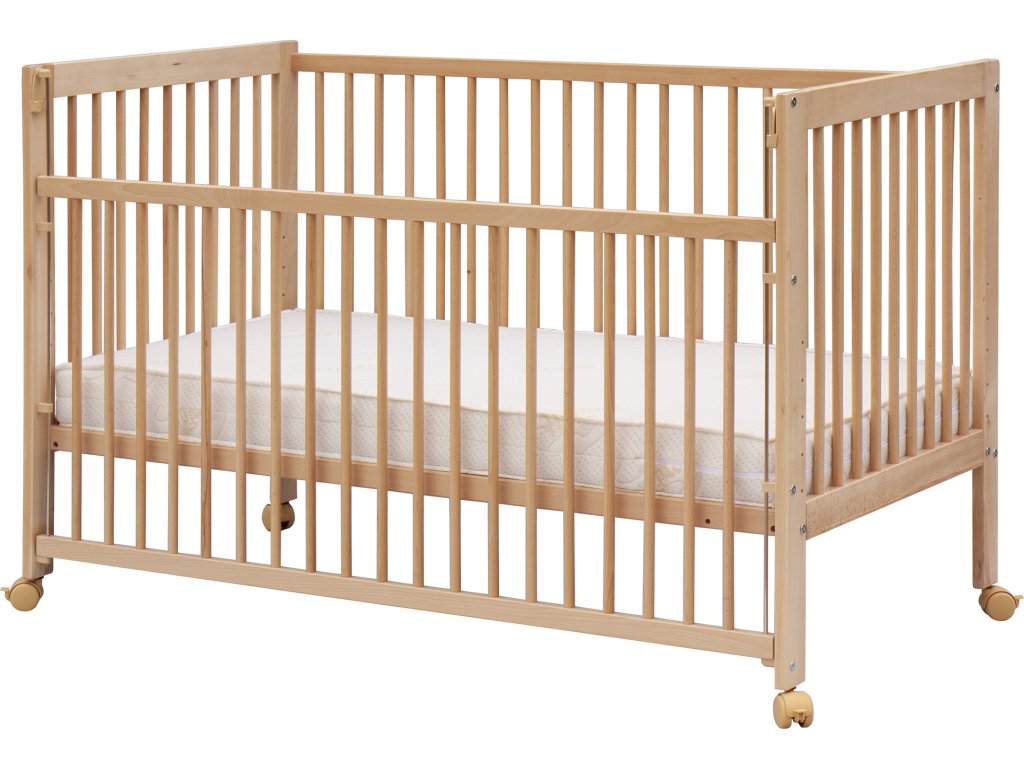 Matrace, válendová bočnice a kolečka nejsou standartní součástí postýlky, ale je možné je objednat z naší nabídky.