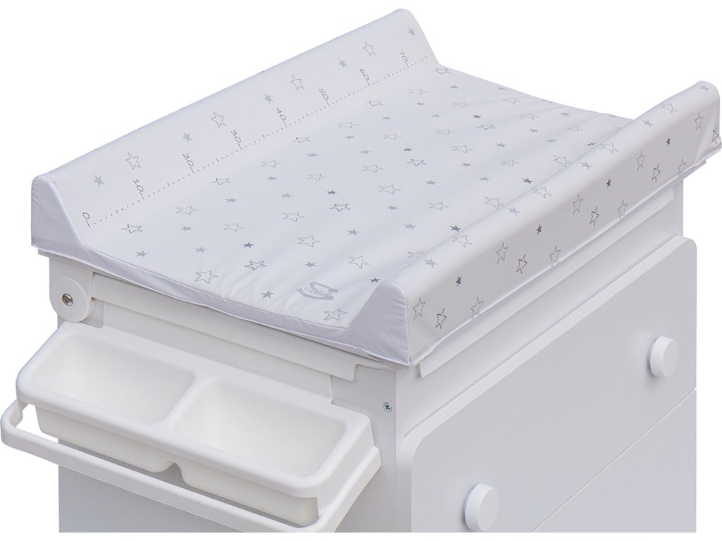 Přebalovací komoda s vaničkou Scarlett Vista - bílá - s Přebalovací podložkou Hvězdička - Bílá