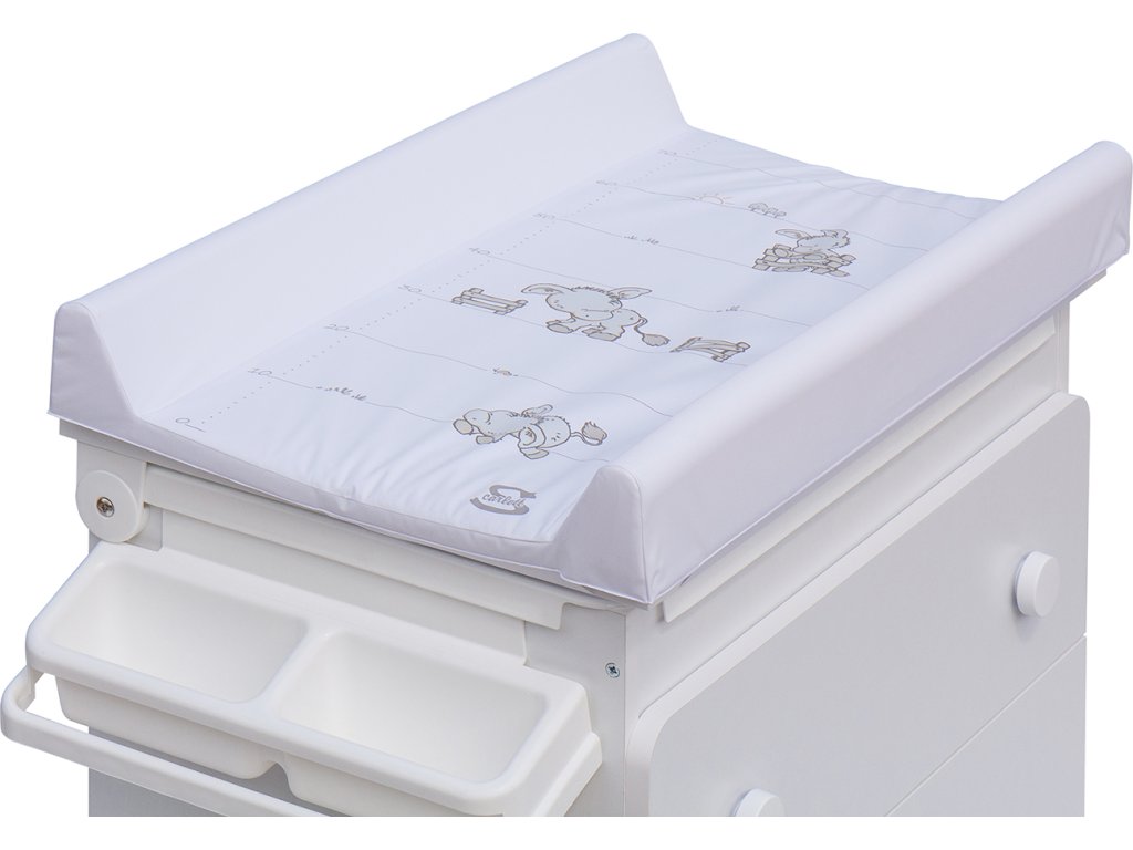 Přebalovací podložka o rozměru 80 x 50 cm s kapsou je součástí komody.