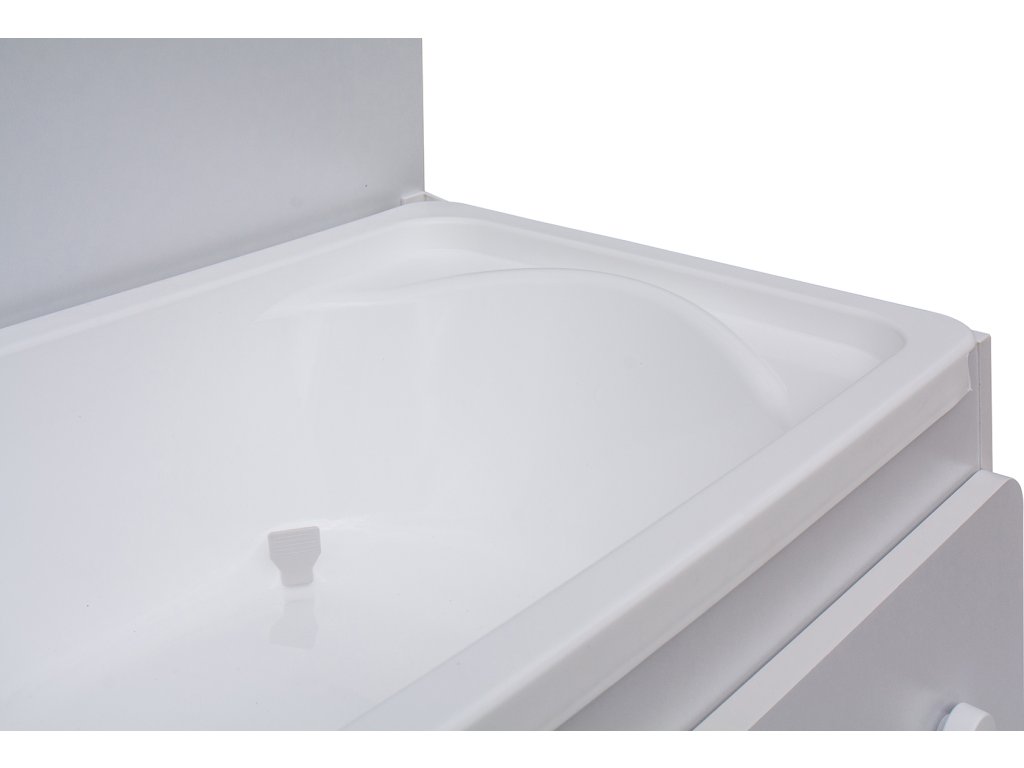 Komoda je také opatřena plastovými kolečky, dvě jsou s brzdou. Komodu lze tedy velmi jednoduše přesouvat dle potřeby. Horní deska nad vaničkou je připevněna na otočných kloubech pro snadné zvedání. Komoda je dále opatřena třemi velkými šuplíky.