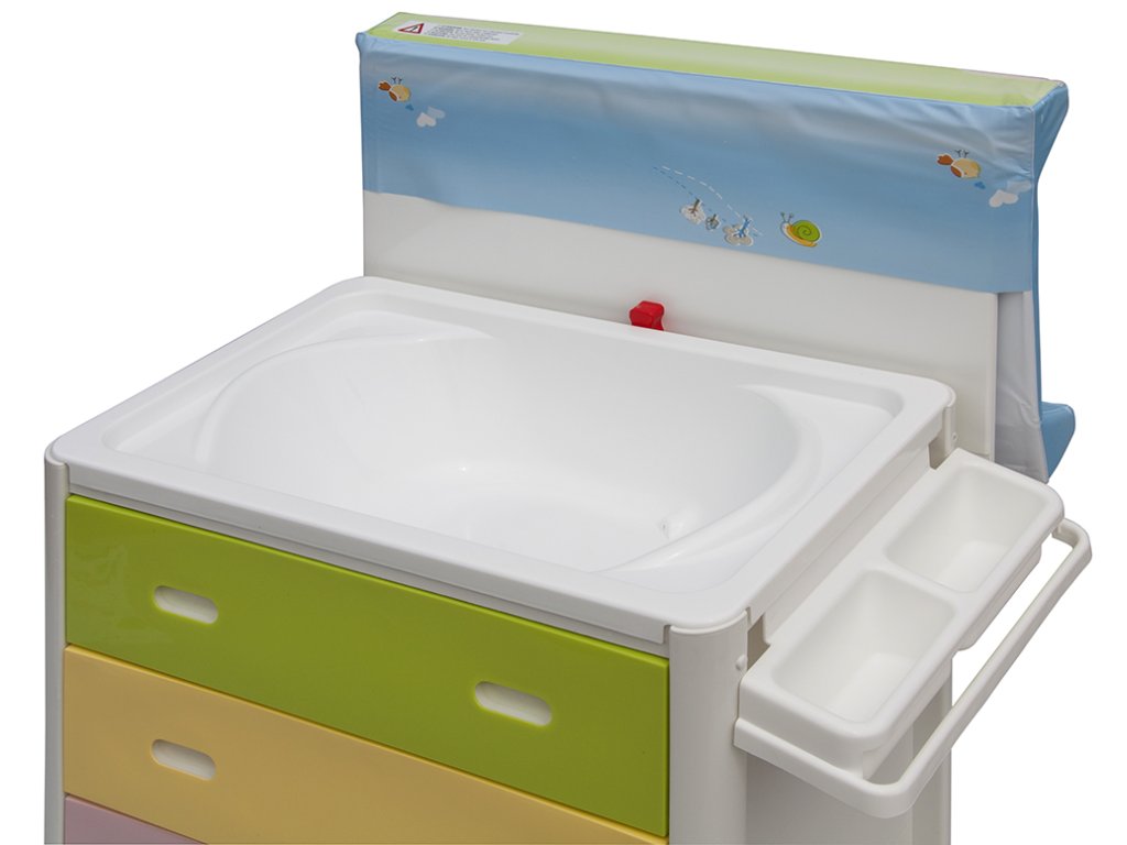 Koupání: pod přebalovací podložkou je umístěna velká vanička.