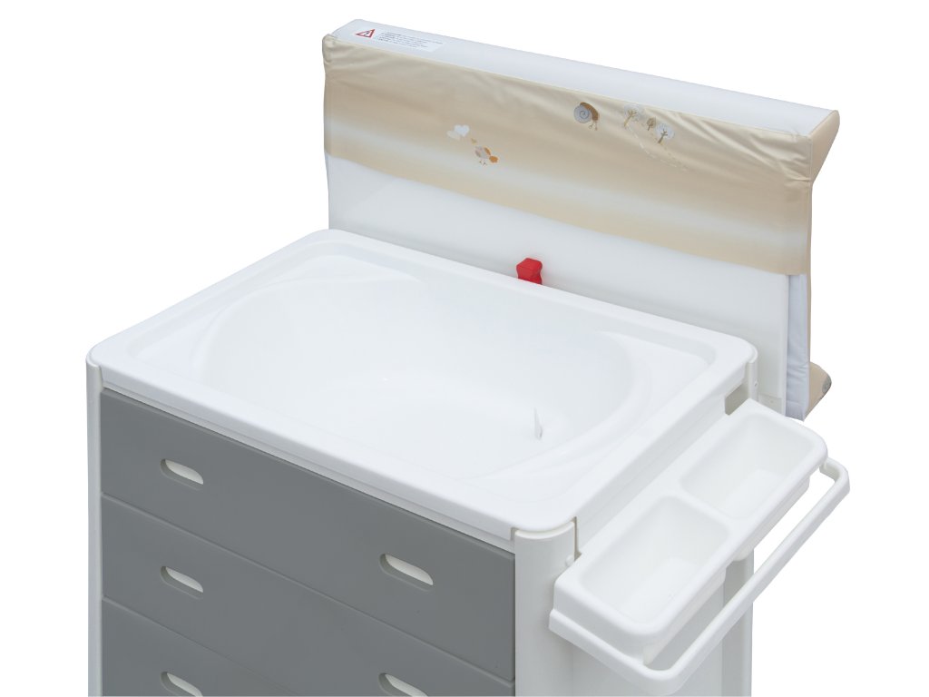 Koupání: pod přebalovací podložkou je umístěna velká vanička.