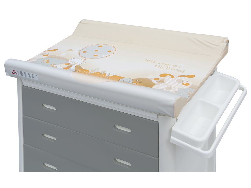 Přebalování: tvarovaná přebalovací podložka s pevnou deskou. Povrch podložky je vyroben z bezpečného PVC nejvyšší kvality, neobsahující ftaláty, je omyvatelná a lehce se udržuje v čistotě.