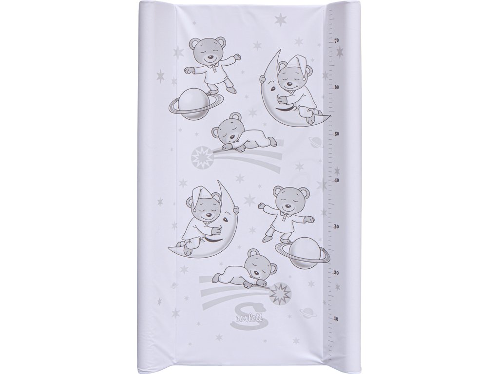 Přebalovací podložka s kapsou na spodní straně a profilovanými okraji z kvalitním PVC potahem bez ftalátů, vyplněná molitanem. Tato podložka je určena na komody s výklopnou deskou. Motivy přebalovacích podložek se často obměňují.