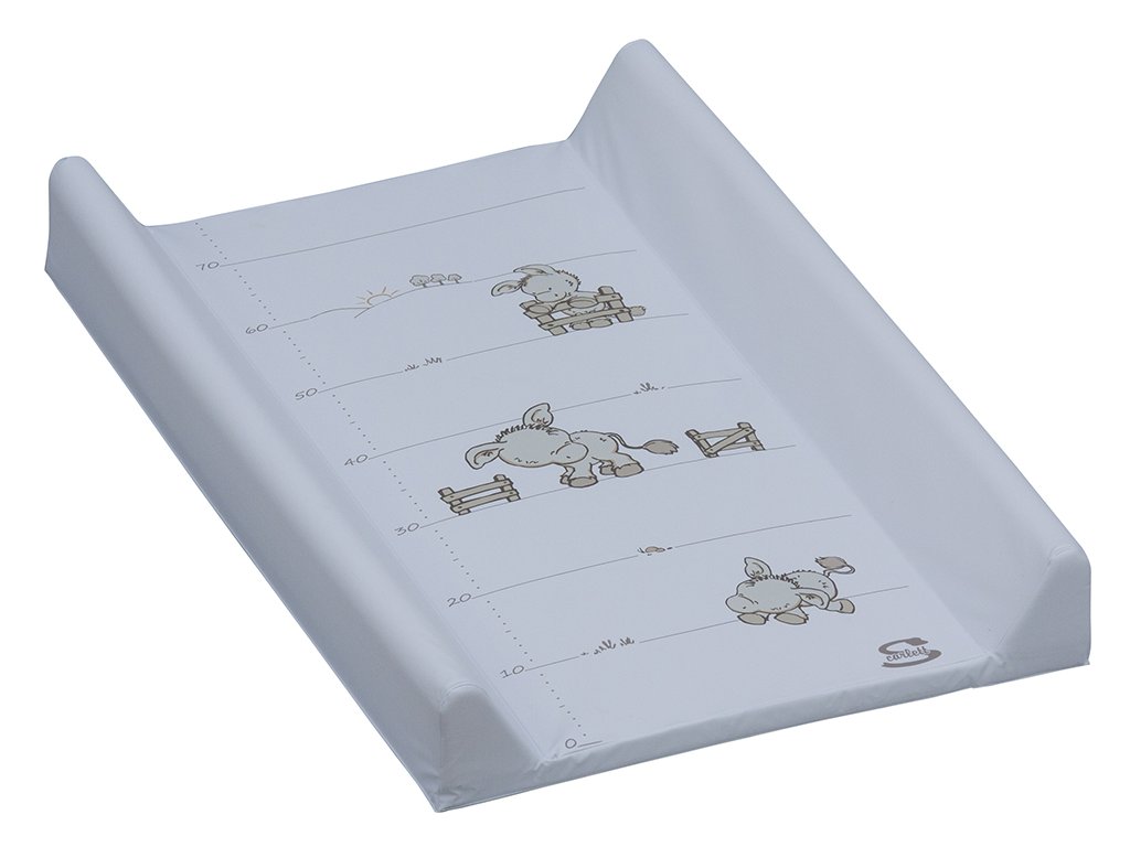 Přebalovací podložka s kapsou na spodní straně a profilovanými okraji z kvalitním PVC potahem bez ftalátů, vyplněná molitanem. Tato podložka je určena na komody s výklopnou deskou. Motivy přebalovacích podložek se často obměňují.