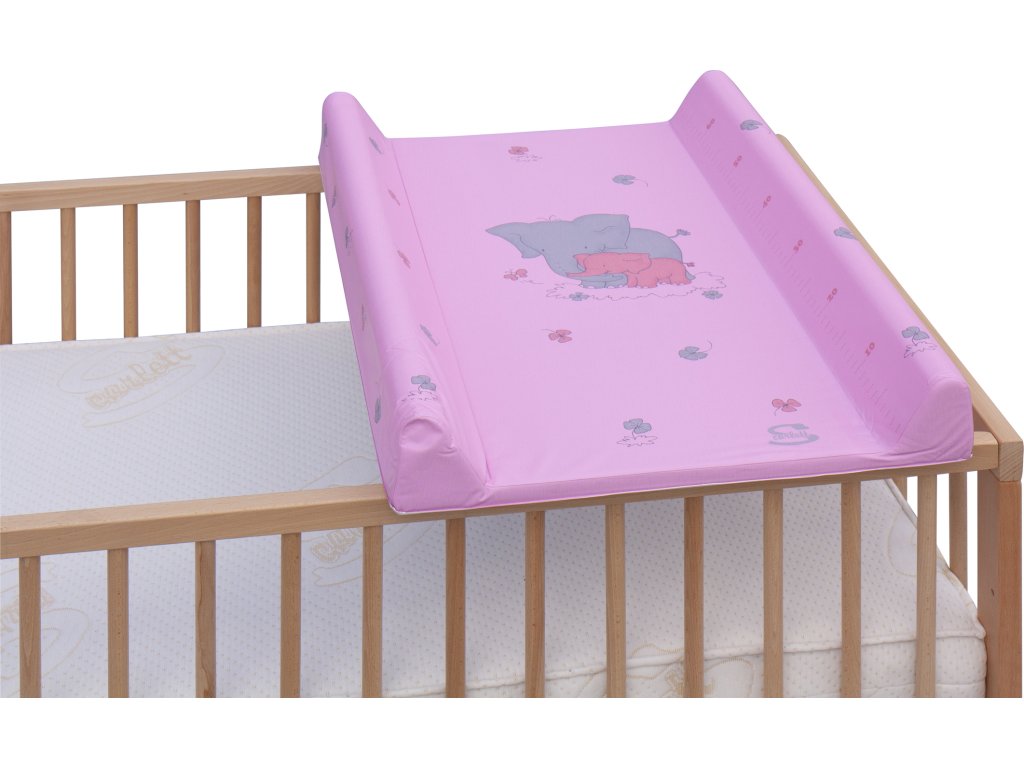 Přebalovací podložka s pevnou vložkou z MDF a profilovanými okraji s kvalitním PVC potahem bez ftalátů, vyplněná molitanem.