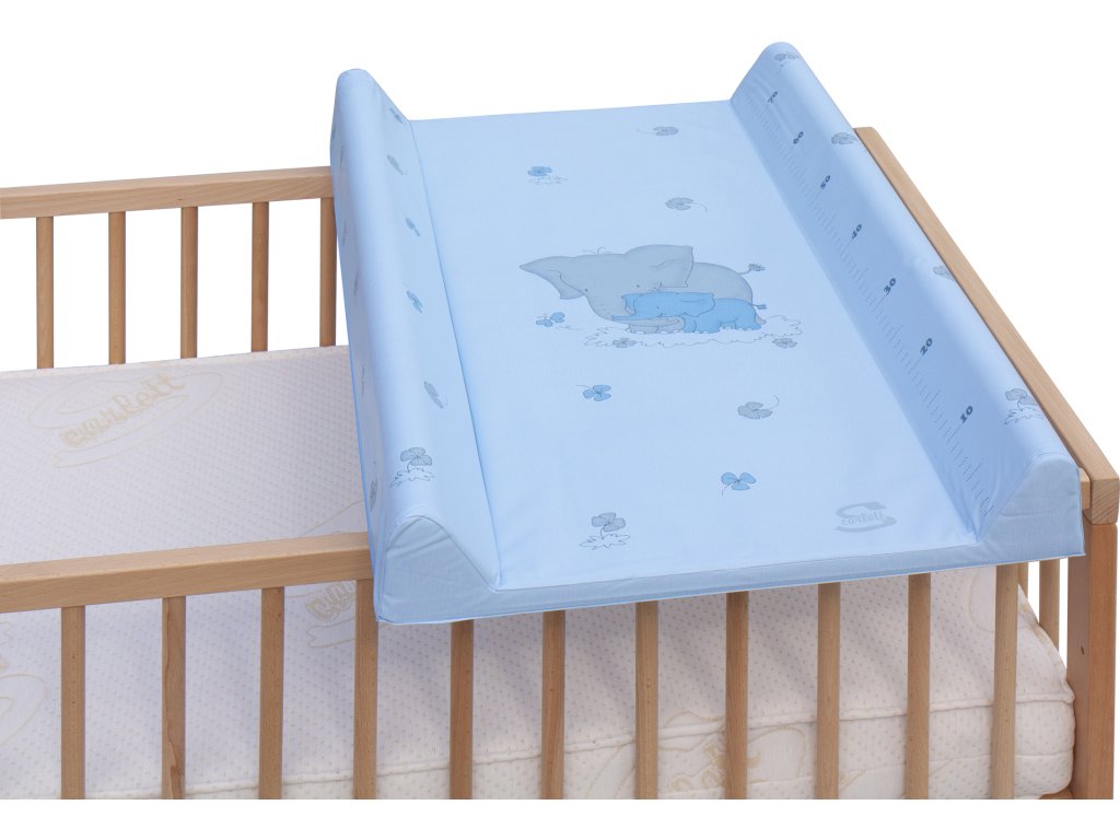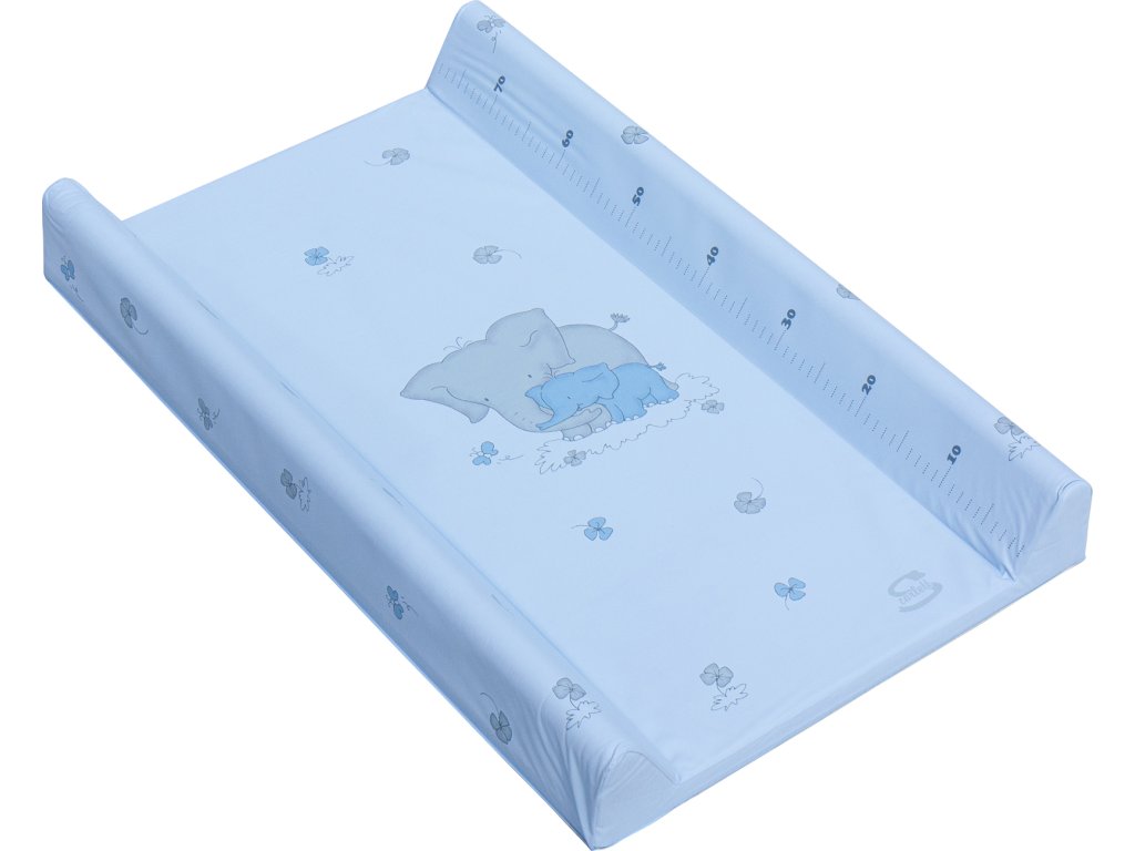 Přebalovací podložka s pevnou vložkou z MDF a profilovanými okraji s kvalitním PVC potahem bez ftalátů, vyplněná molitanem.