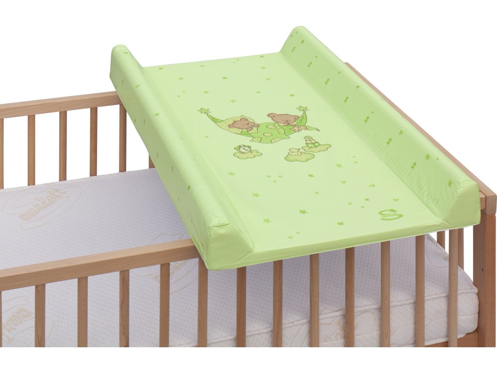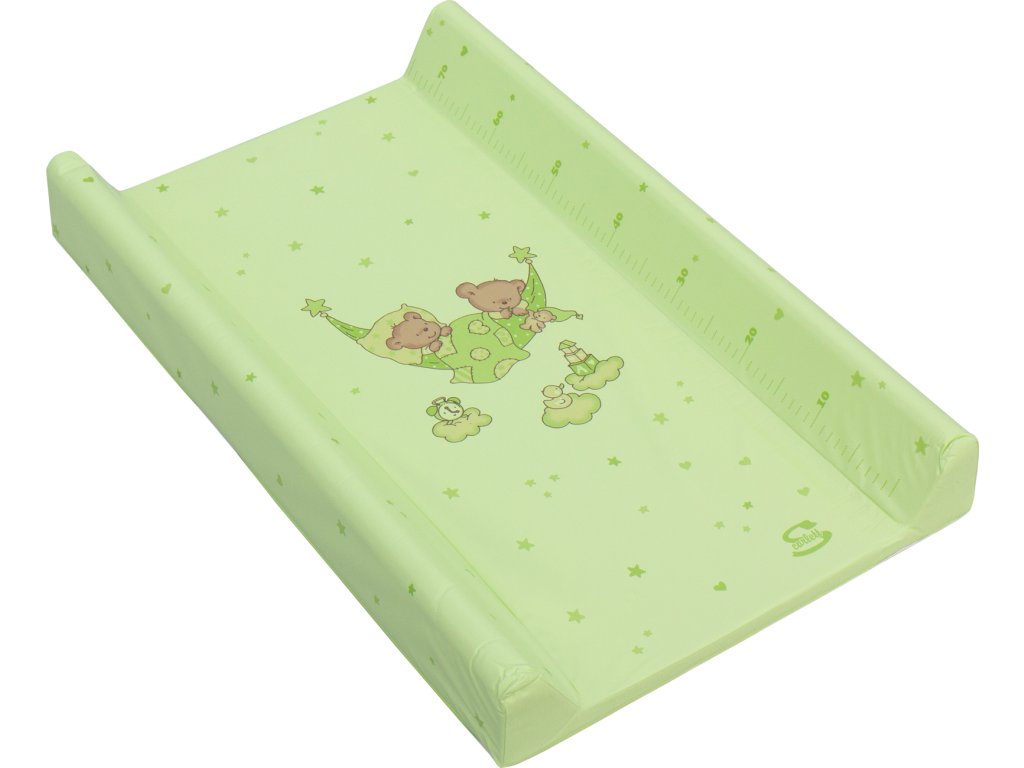 Přebalovací podložka s pevnou vložkou z MDF a profilovanými okraji s kvalitním PVC potahem bez ftalátů, vyplněná molitanem.