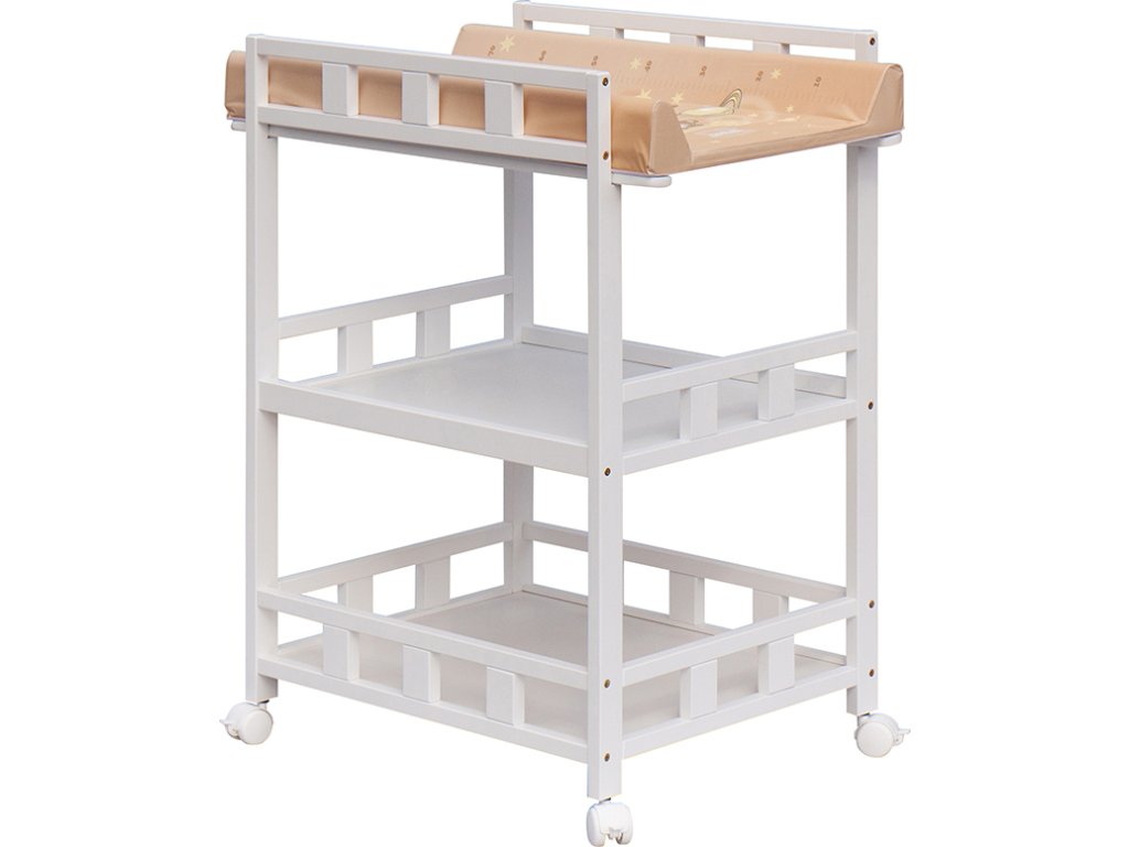 Praktický přebalovací pult se dvěmi policemi z HDF desky. Vrchní přebalovací pult z polyuretanu potažený omyvatelným PVC, vyztužený MDF deskou.
