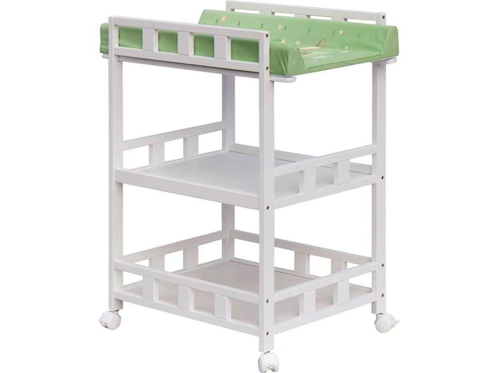Praktický přebalovací pult se dvěmi policemi z HDF desky. Vrchní přebalovací pult z polyuretanu potažený omyvatelným PVC, vyztužený MDF deskou.