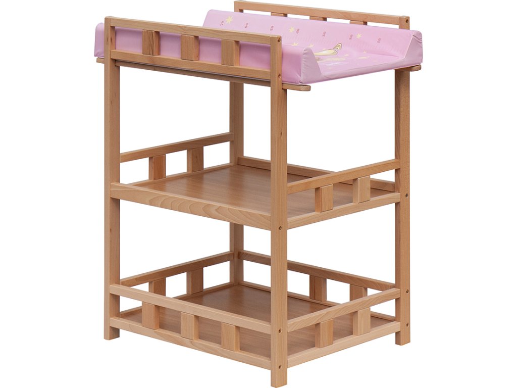 Praktický přebalovací pult se dvěmi policemi z HDF desky. Vrchní přebalovací pult z polyuretanu potažený omyvatelným PVC, vyztužený MDF deskou.