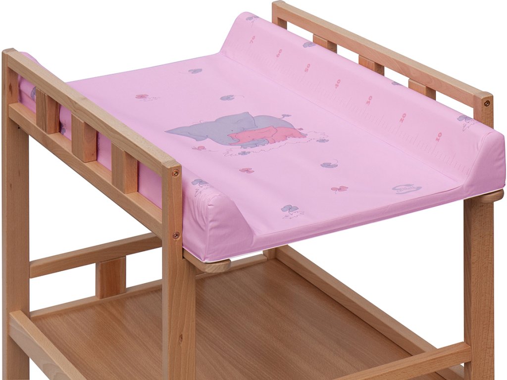 Praktický přebalovací pult se dvěmi policemi z HDF desky. Vrchní přebalovací pult z polyuretanu potažený omyvatelným PVC, vyztužený MDF deskou.