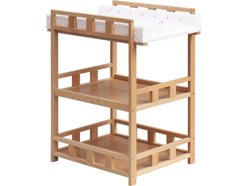 Praktický přebalovací pult se dvěmi policemi z HDF desky. Vrchní přebalovací pult z polyuretanu potažený omyvatelným PVC, vyztužený MDF deskou.