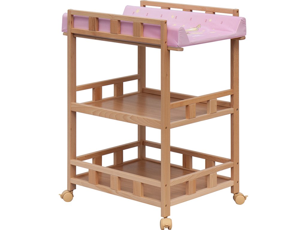 Praktický přebalovací pult se dvěmi policemi z HDF desky. Vrchní přebalovací pult z polyuretanu potažený omyvatelným PVC, vyztužený MDF deskou.