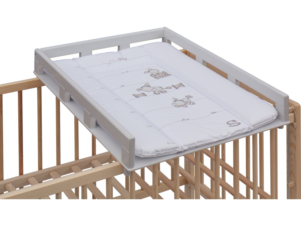Přebalovací pult OGY Scarlett na postýlku - šedý - s přebalovací podložkou Oslík - bílý