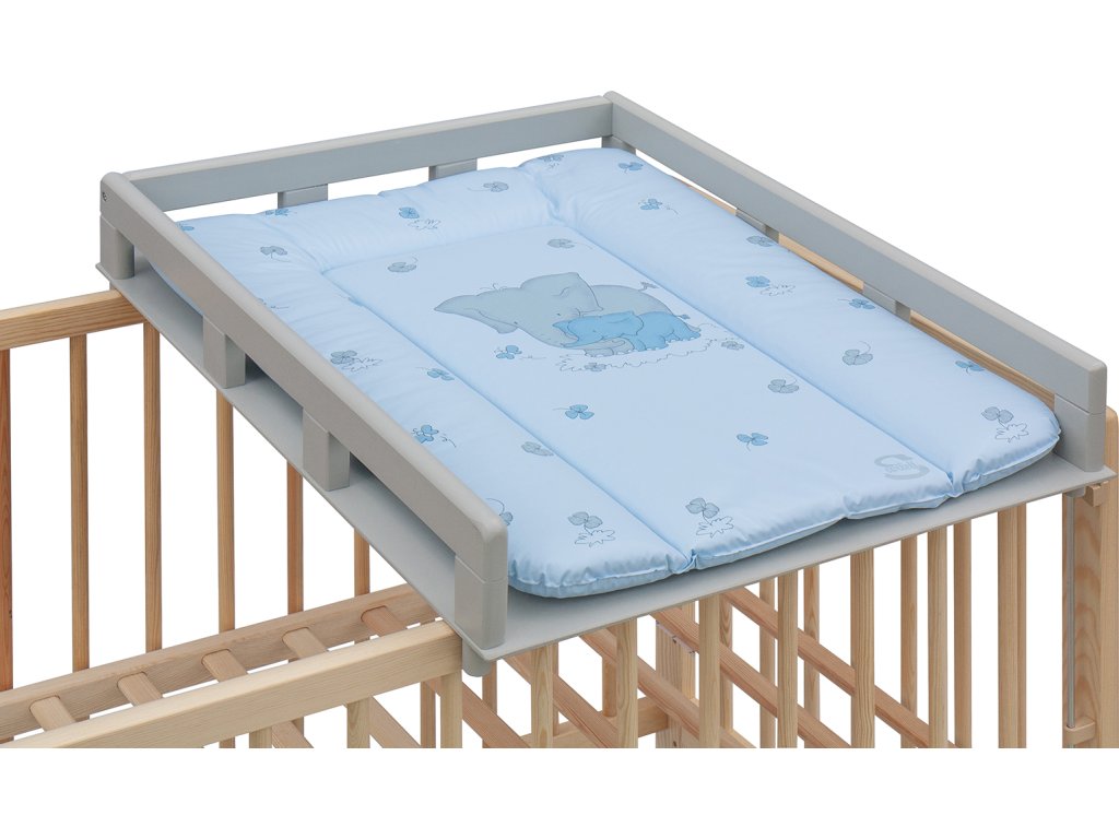 Přebalovací pult OGY Scarlett na postýlku - šedý - s přebalovací podložkou Slon - Modrý