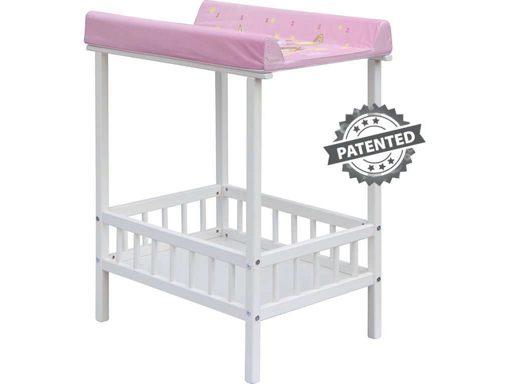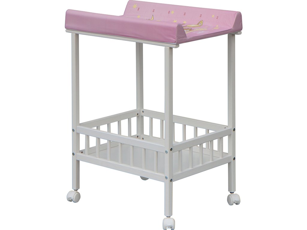 Praktický přebalovací pult se dvěmi policemi z HDF desky. Vrchní přebalovací pult z polyuretanu potažený omyvatelným PVC, vyztužený MDF deskou.
