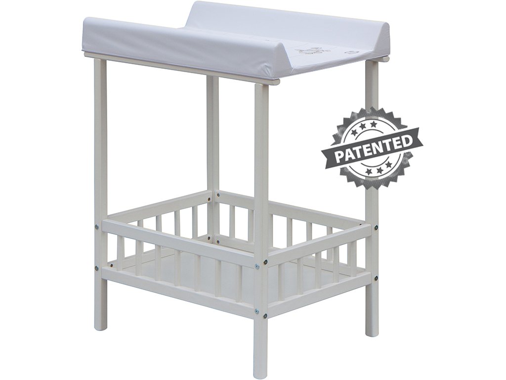 Praktický přebalovací pult se dvěmi policemi z HDF desky. Vrchní přebalovací pult z polyuretanu potažený omyvatelným PVC, vyztužený MDF deskou.