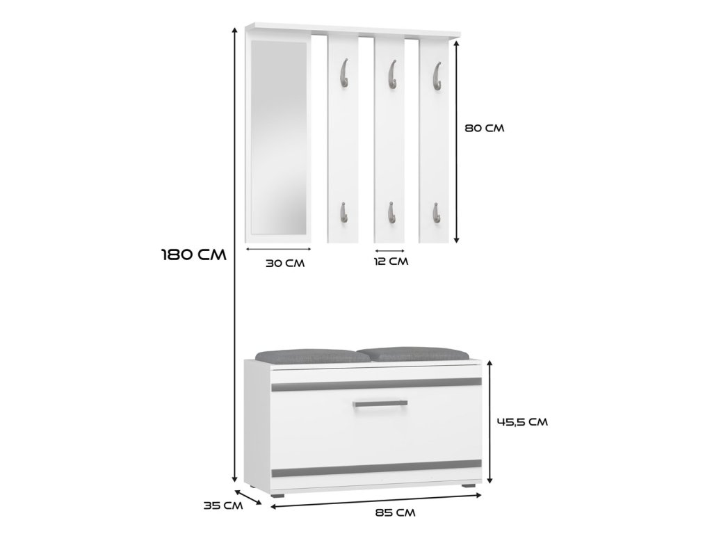 Moderní nábytek ve skandinávském stylu splní očekávání všech, kteří oceňují kombinaci jednoduchosti a elegance. Předsíňová sestava Granát je ideálním řešením pro stylové a funkční interiéry jako jsou malé kancelářské prostory a chodby. Nábytek je vyroben z vysoce kvalitního lamina, které je snadno udržovatelné a odolné proti oděru, dlouhou životnost nábytku zajišťují hrany zakončené odolným ABS materiálem.