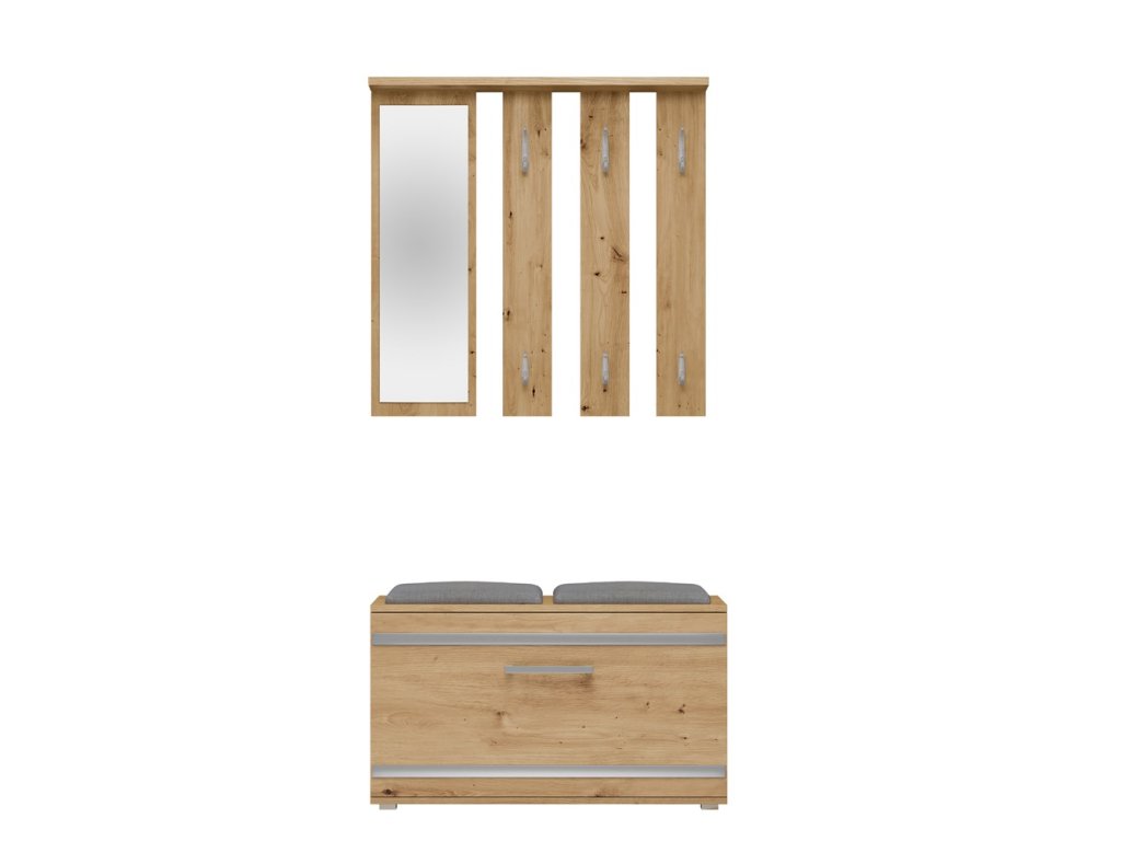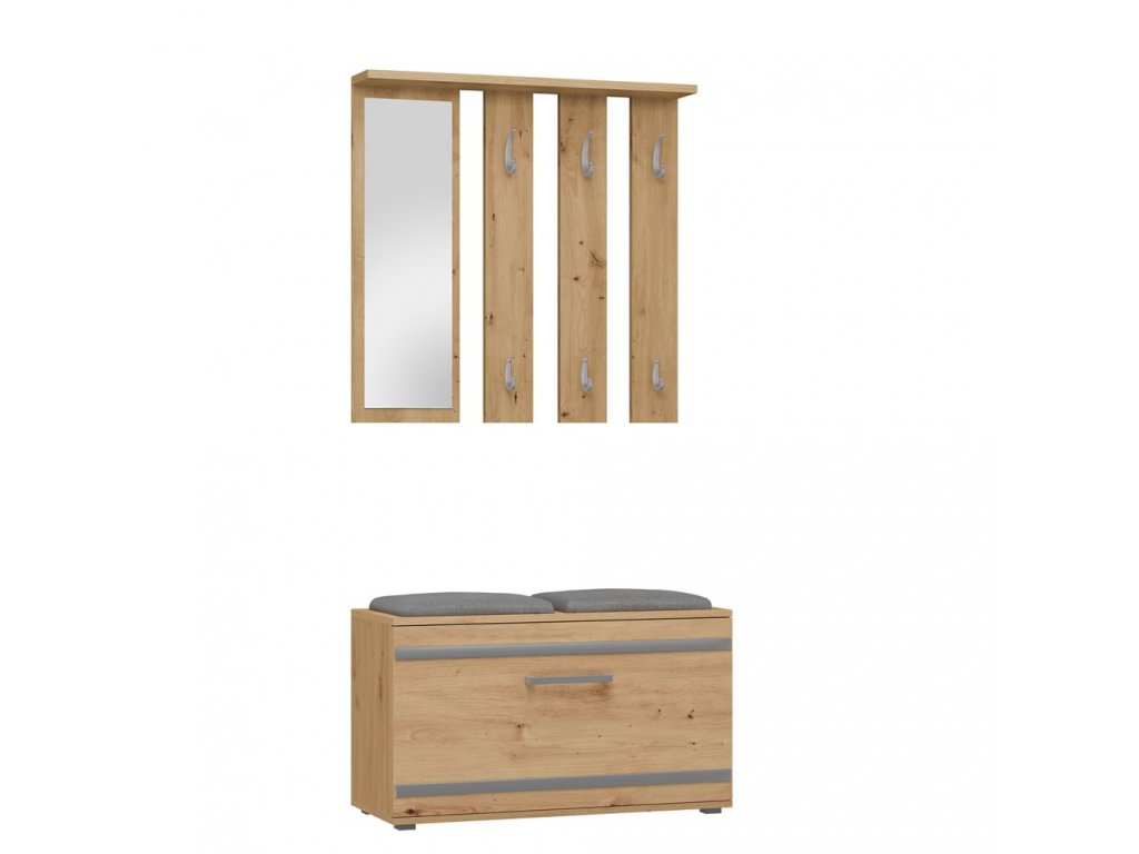 Moderní nábytek ve skandinávském stylu splní očekávání všech, kteří oceňují kombinaci jednoduchosti a elegance. Předsíňová sestava Granát je ideálním řešením pro stylové a funkční interiéry jako jsou malé kancelářské prostory a chodby. Nábytek je vyroben z vysoce kvalitního lamina, které je snadno udržovatelné a odolné proti oděru, dlouhou životnost nábytku zajišťují hrany zakončené odolným ABS materiálem.
