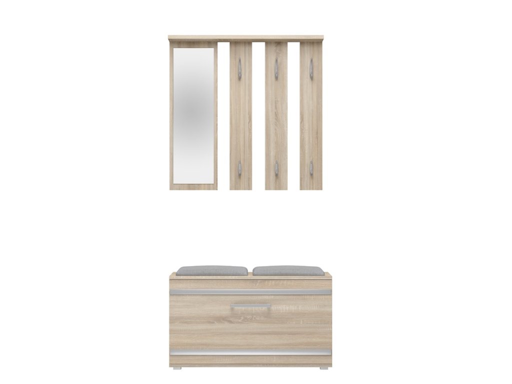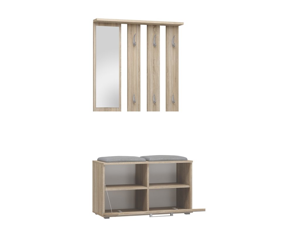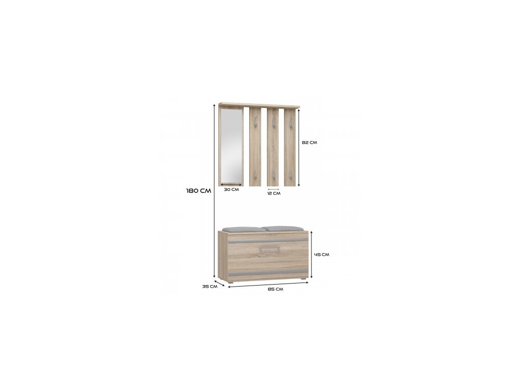 Moderní nábytek ve skandinávském stylu splní očekávání všech, kteří oceňují kombinaci jednoduchosti a elegance. Předsíňová sestava Granát je ideálním řešením pro stylové a funkční interiéry jako jsou malé kancelářské prostory a chodby. Nábytek je vyroben z vysoce kvalitního lamina, které je snadno udržovatelné a odolné proti oděru, dlouhou životnost nábytku zajišťují hrany zakončené odolným ABS materiálem.